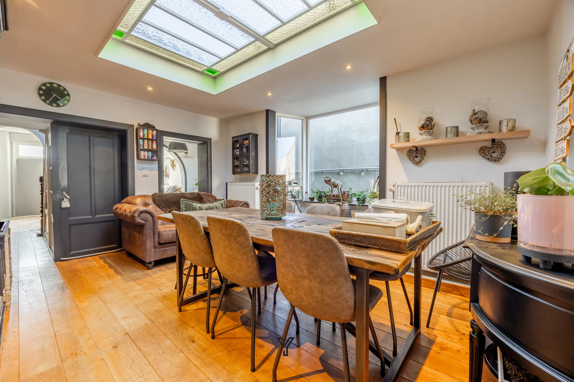 Deze burgerwoning is gelegen in het hartje van Zwevegem, met alle nodige voorzieningen binnen handbereik. Bij het betreden van de woning word je verwelkomd in de inkomhal, die toegang biedt tot zowel de lichtrijke woonkamer als de afzonderlijke eetkamer. De woning beschikt bovendien over een kelder, ideaal als extra bergruimte. Aansluitend bevindt zich de geïnstalleerde, gesloten woonkeuken, die verder toegang verleent tot de wasplaats en een gastentoilet. Vanuit deze ruimte bereik je de gezellige binnenplaats, waar je kan genieten van een aangenaam buitenmoment of zelf een groene toets kan creëren. Verder doorlopend kom je bij de ruime garage met automatische poort, die bereikbaar is via de zijstraat. Op de eerste verdieping bevindt zich de master bedroom en een comfortabele badkamer uitgerust met een ligbad, douche, dubbele lavabo en toilet. De tweede verdieping biedt bijkomende mogelijkheden met een tussenkamer, ideaal als bureau, dressing of tweede slaapkamer en een volwaardige derde slaapkamer. Kortom, een veelzijdige en goed gelegen woning met tal van troeven voor wie op zoek is naar ruimte en comfort! Als extra troef is er de conforme elektriciteit en een goede mobiscore! Wees er vlug bij en neem dan gerust contact met ons op via 056 75 76 79. Tot binnenkort!
