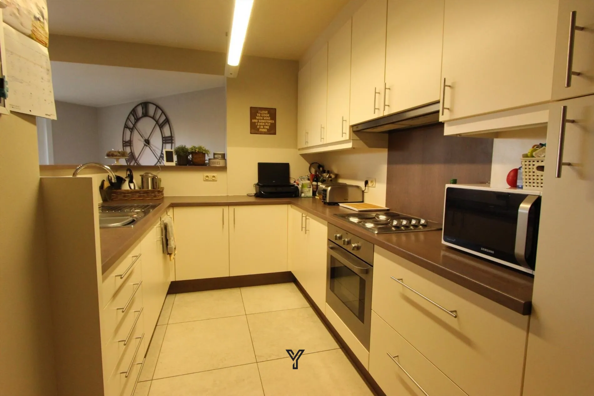 Dit centraal gelegen gelijkvloers appartement bestaat uit een woonkamer met zicht op de tuin, een ingerichte open keuken, berging, 2 slaapkamers en badkamer met lavabo in meubel, ligbad en douche. Er is een onderhoudsvriendelijke tuin met terras aanwezig. Daarnaast heeft men ook nog een garage en een kelderberging.