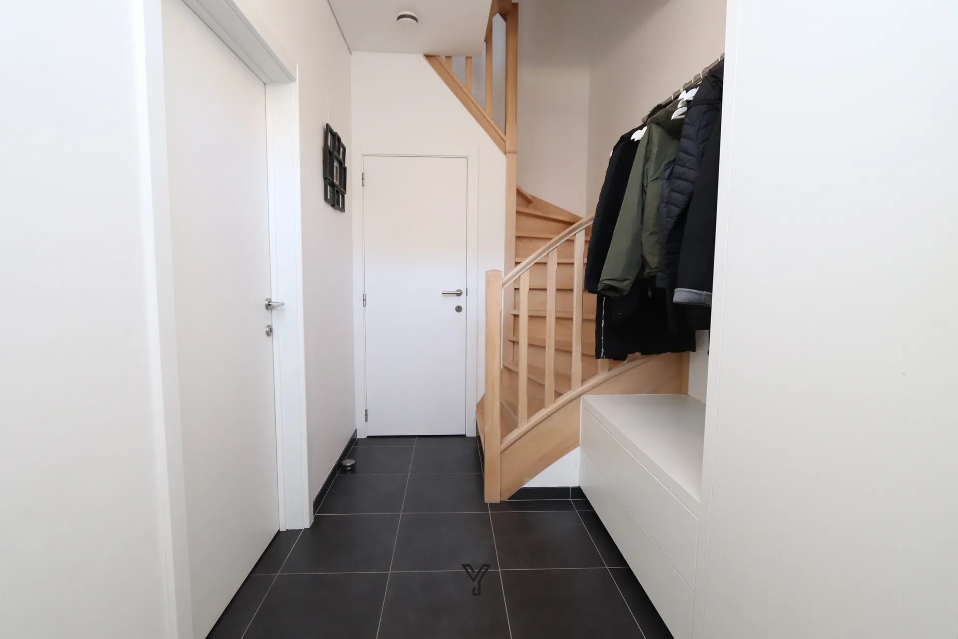 Deze prachtige gezinswoning in Zwevegem verwelkomt u via een verzorgde inkomhal met trap en apart gastentoilet. Meteen springt de hoogwaardige afwerking in het oog, met praktische maatkasten die perfect dienst doen als vestiaire.