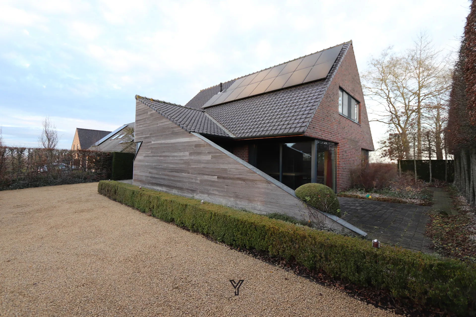 Bij aankomst geniet je van een ruime oprit met plaats voor minstens drie wagens, aangevuld met een inpandige garage.