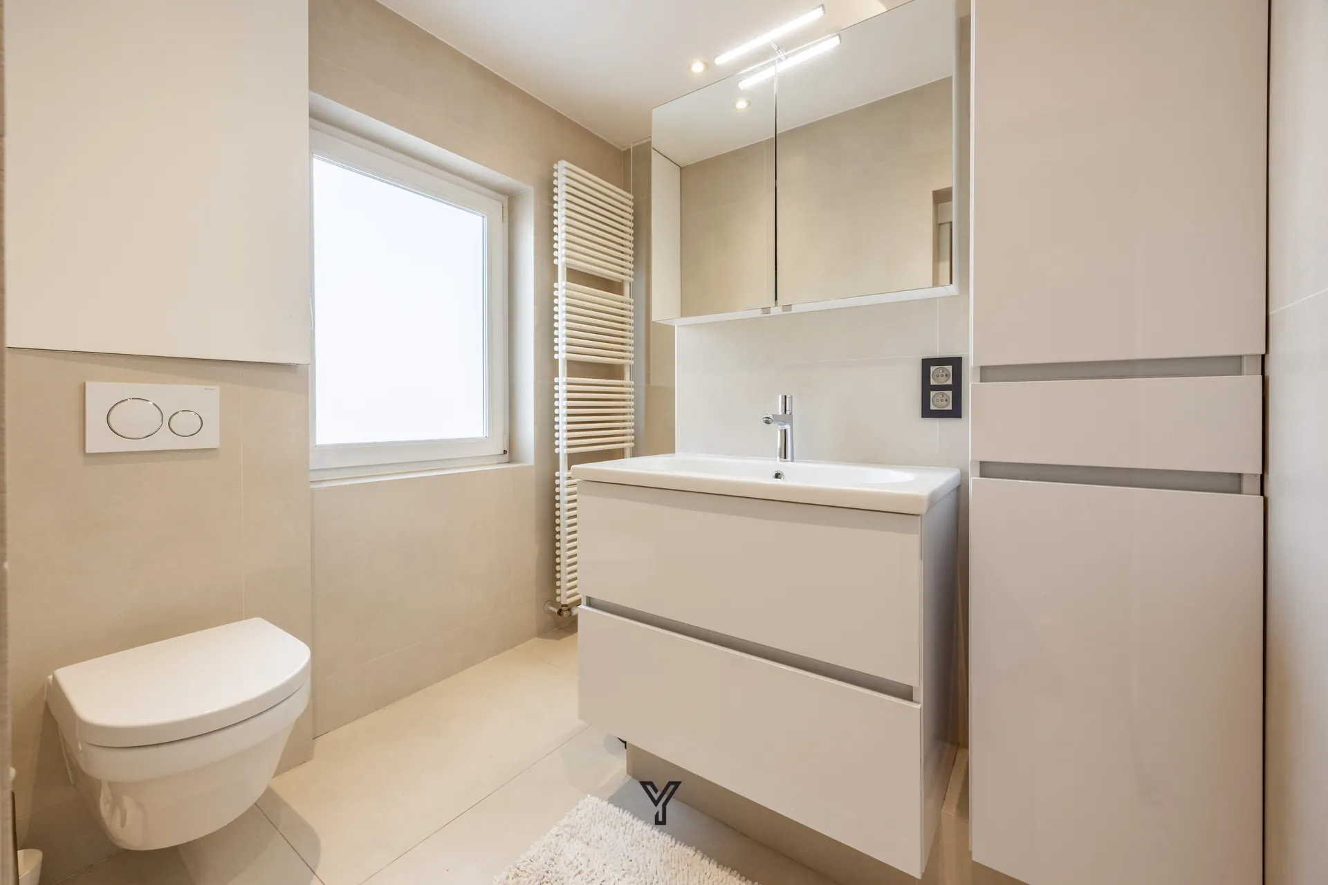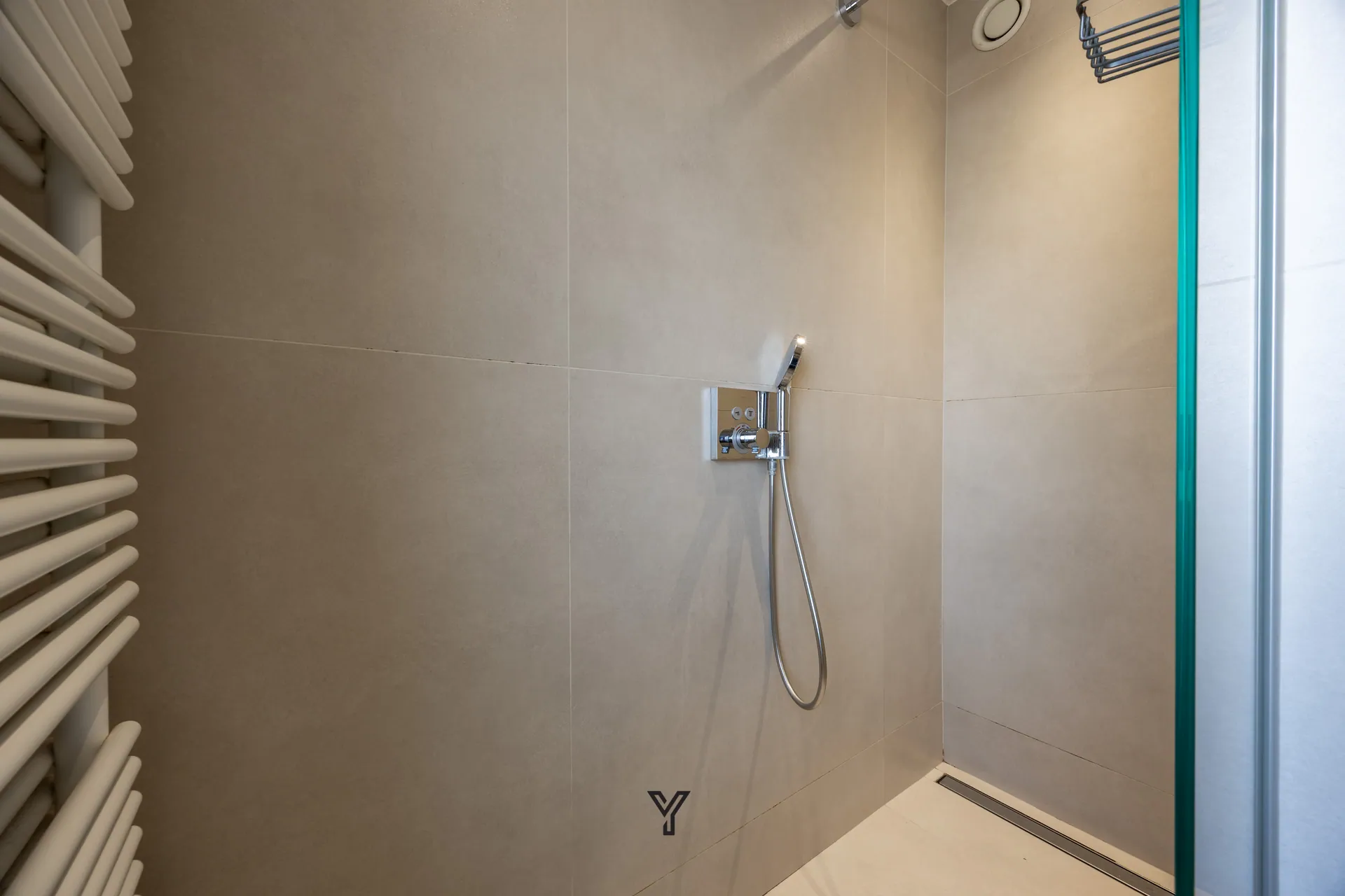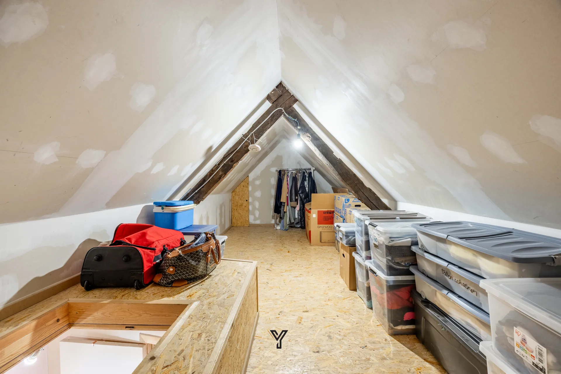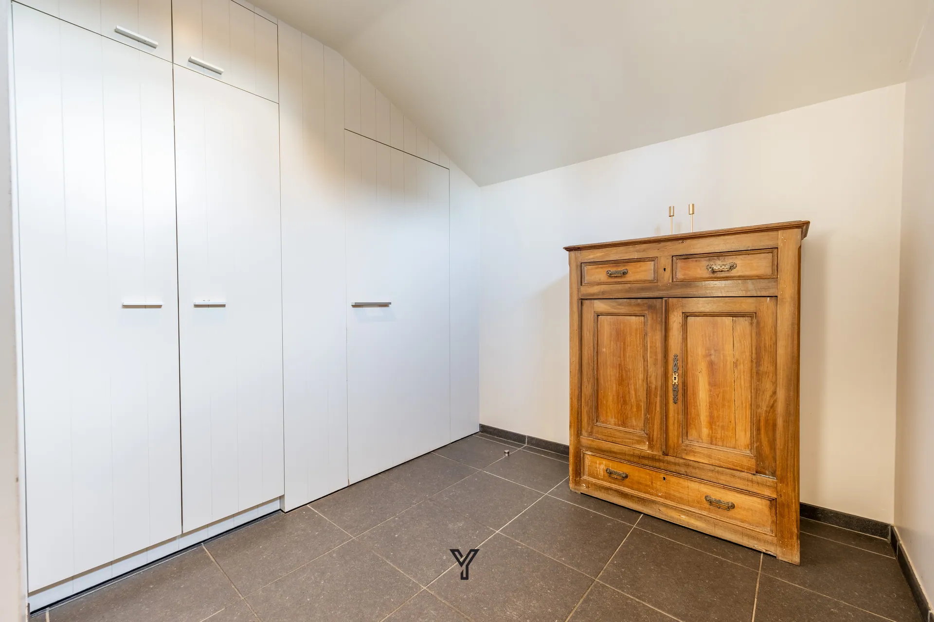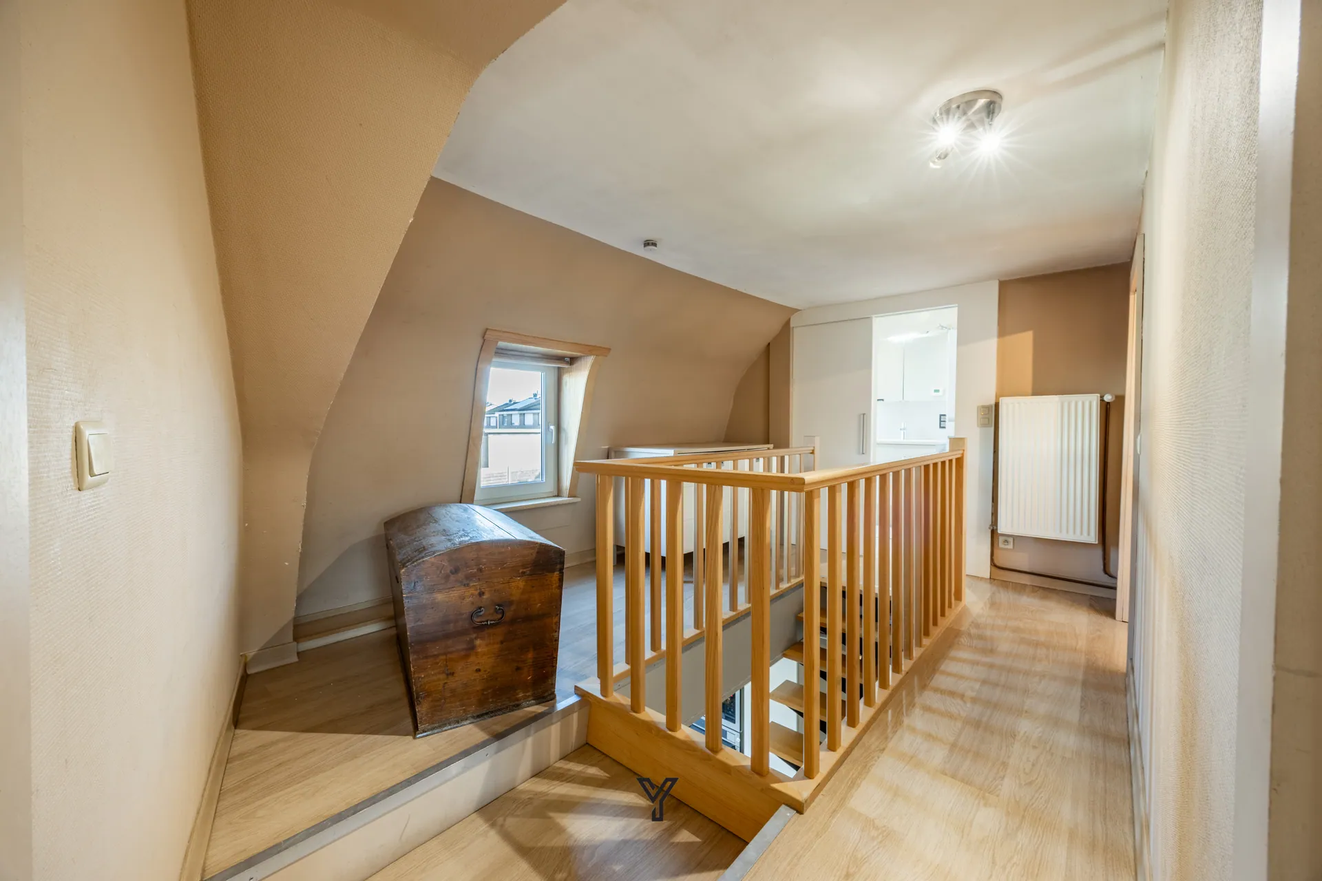 Via de industriële trap bereikt u de bovenverdieping. Hier vindt u een stijlvolle, recent gerenoveerde badkamer met inloopdouche, lavabo in meubel en toilet. Verder zijn er drie volwaardige slaapkamers en toegang tot de volledig geïsoleerde zolder.