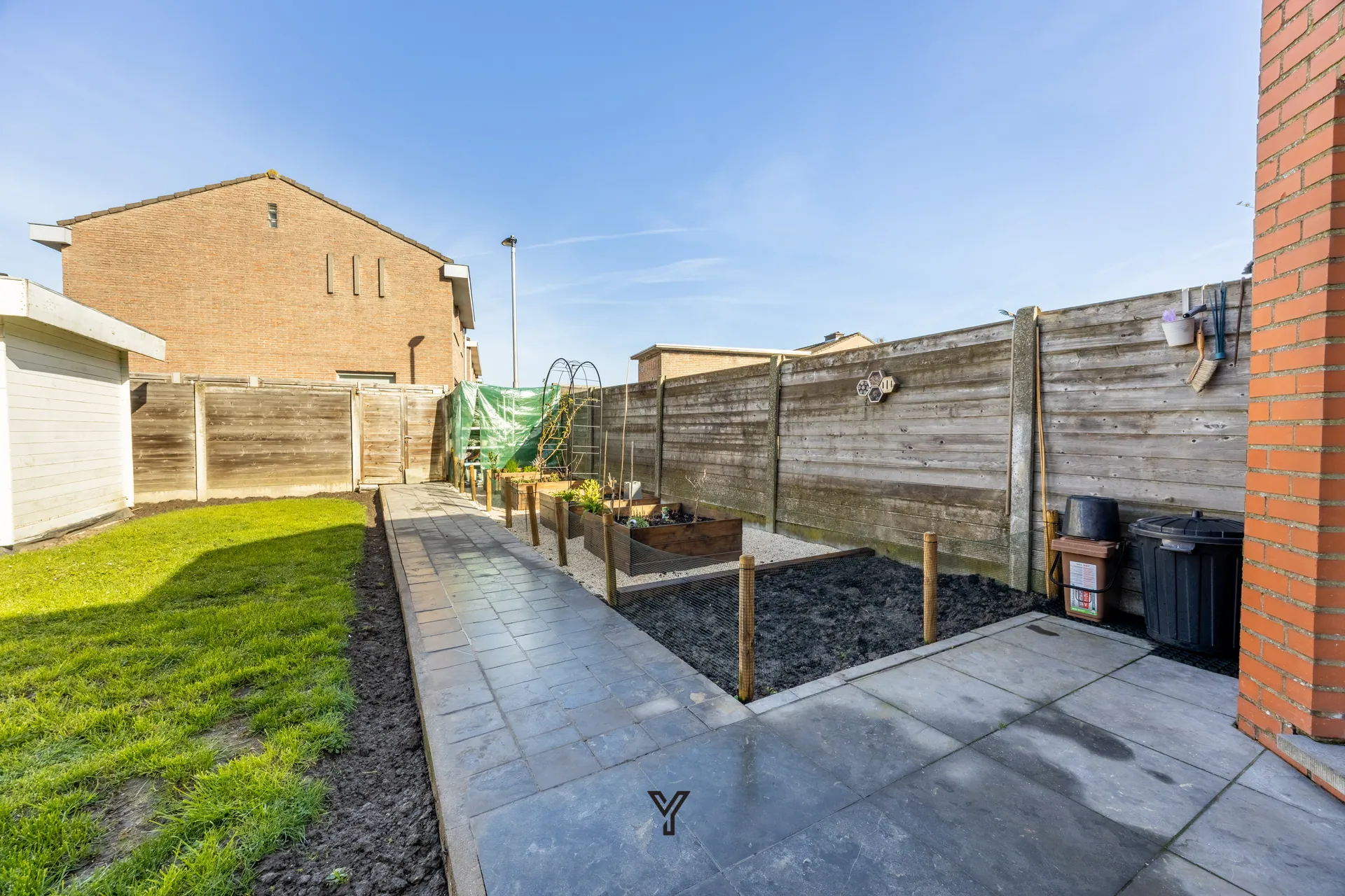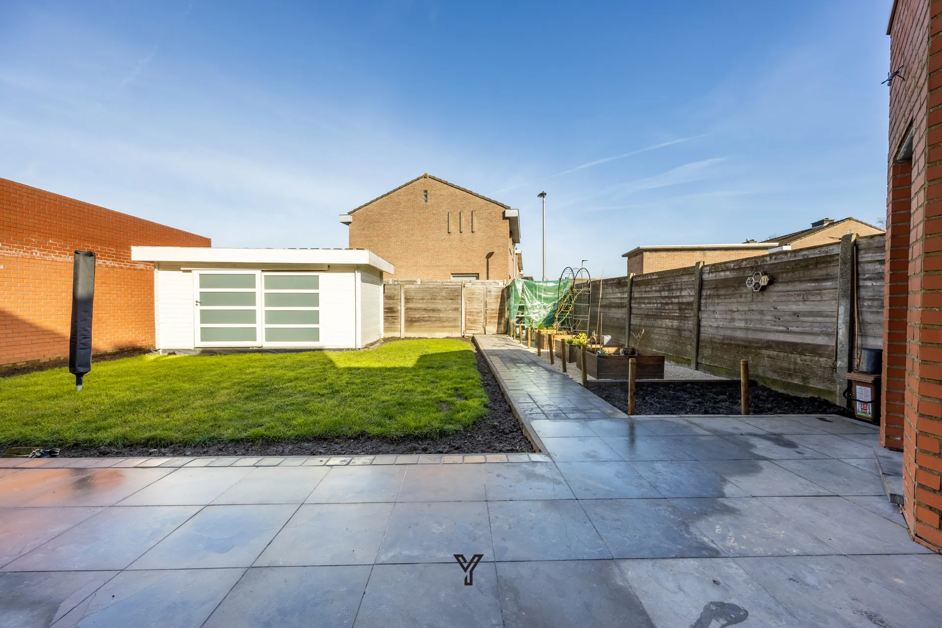 Buiten geniet u van een gezellig terras, een onderhoudsvriendelijke tuin en een praktisch tuinhuis. Bovendien is er een achteruitweg, ideaal voor fietsen.