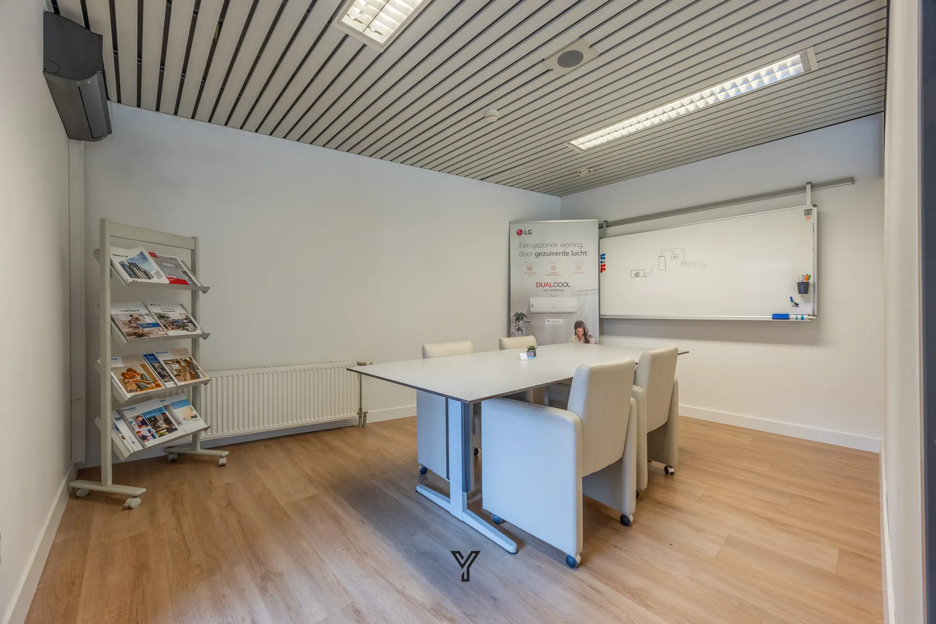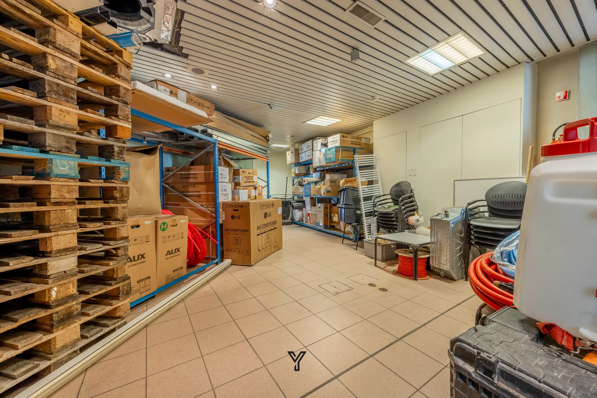 Achteraan bevindt zich een bijkomende toonzaalruimte, die extra commerciële mogelijkheden creëert. Verder beschikt het pand over een praktische berging, een ruime vergaderzaal, een sanitaire ruimte met twee toiletten en urinoir. Tevens is er een aparte keuken, ideaal voor een rustige middagpauze. Achteraan de handelsruimte bevindt zich nog een gemeenschappelijke patio. Op heden heeft de handelsruimte een energielabel C. Ondertussen werden er al nieuwe airco's geïnstalleerd.