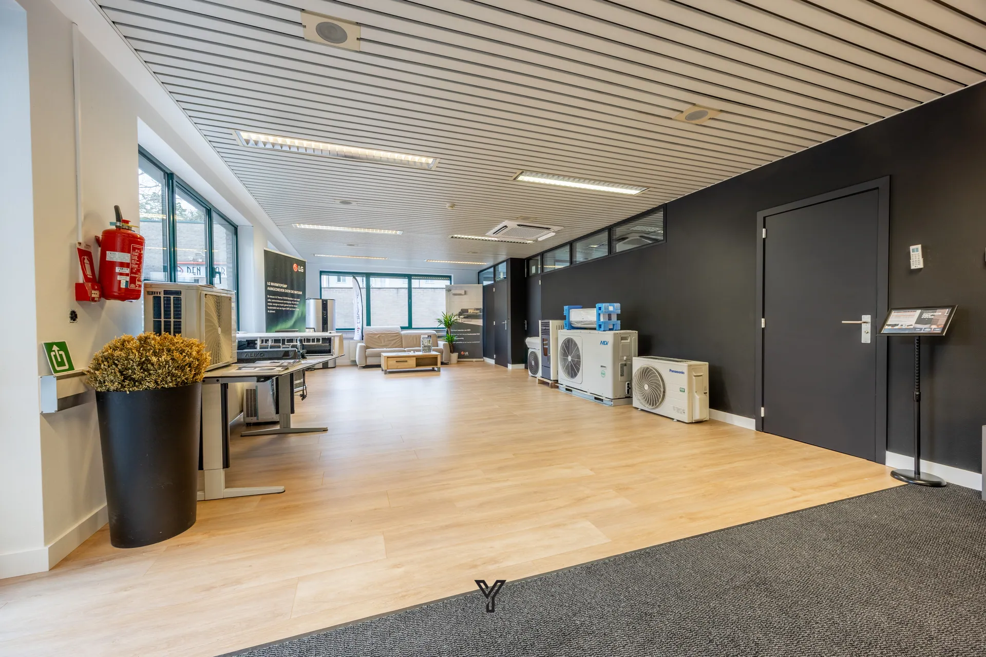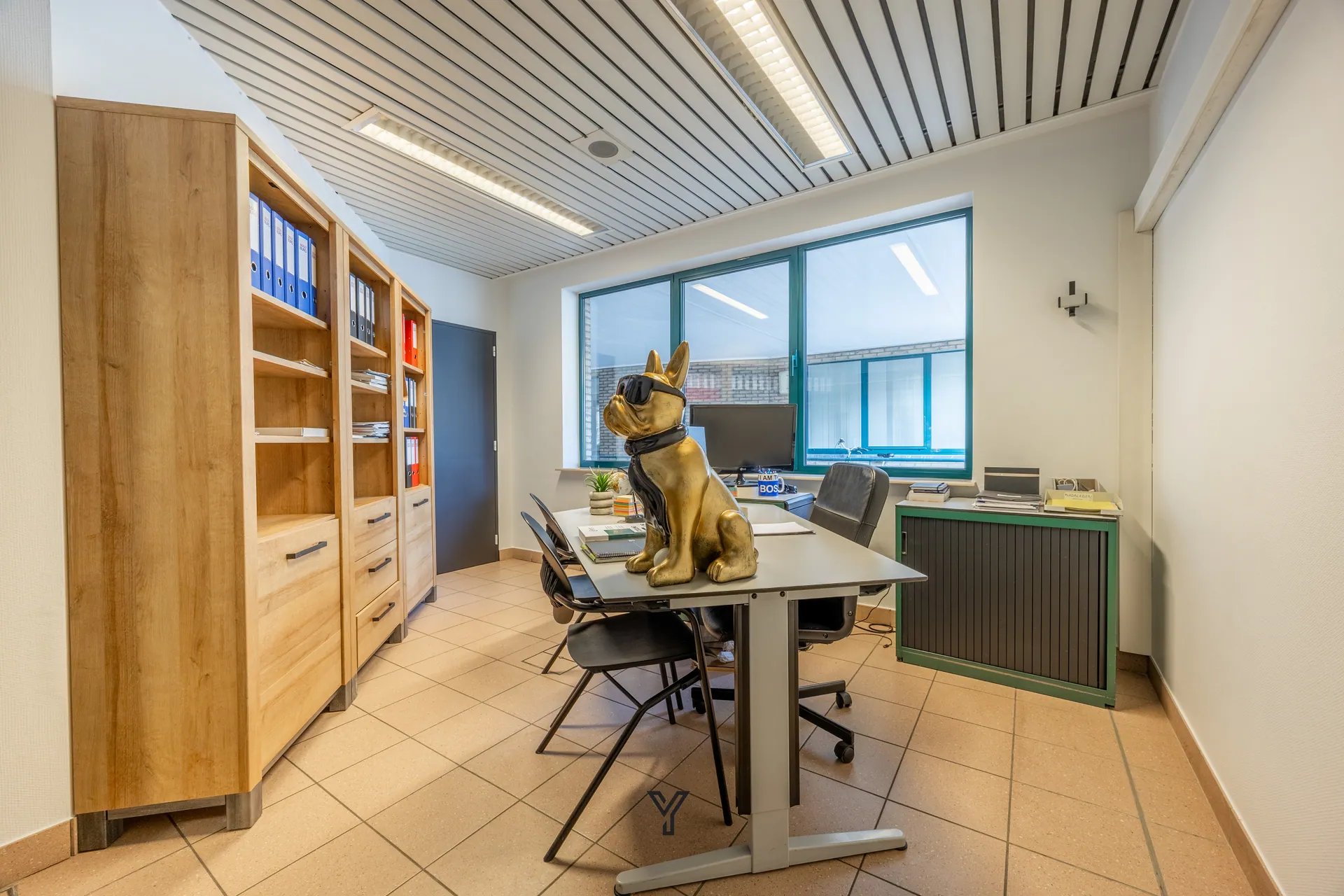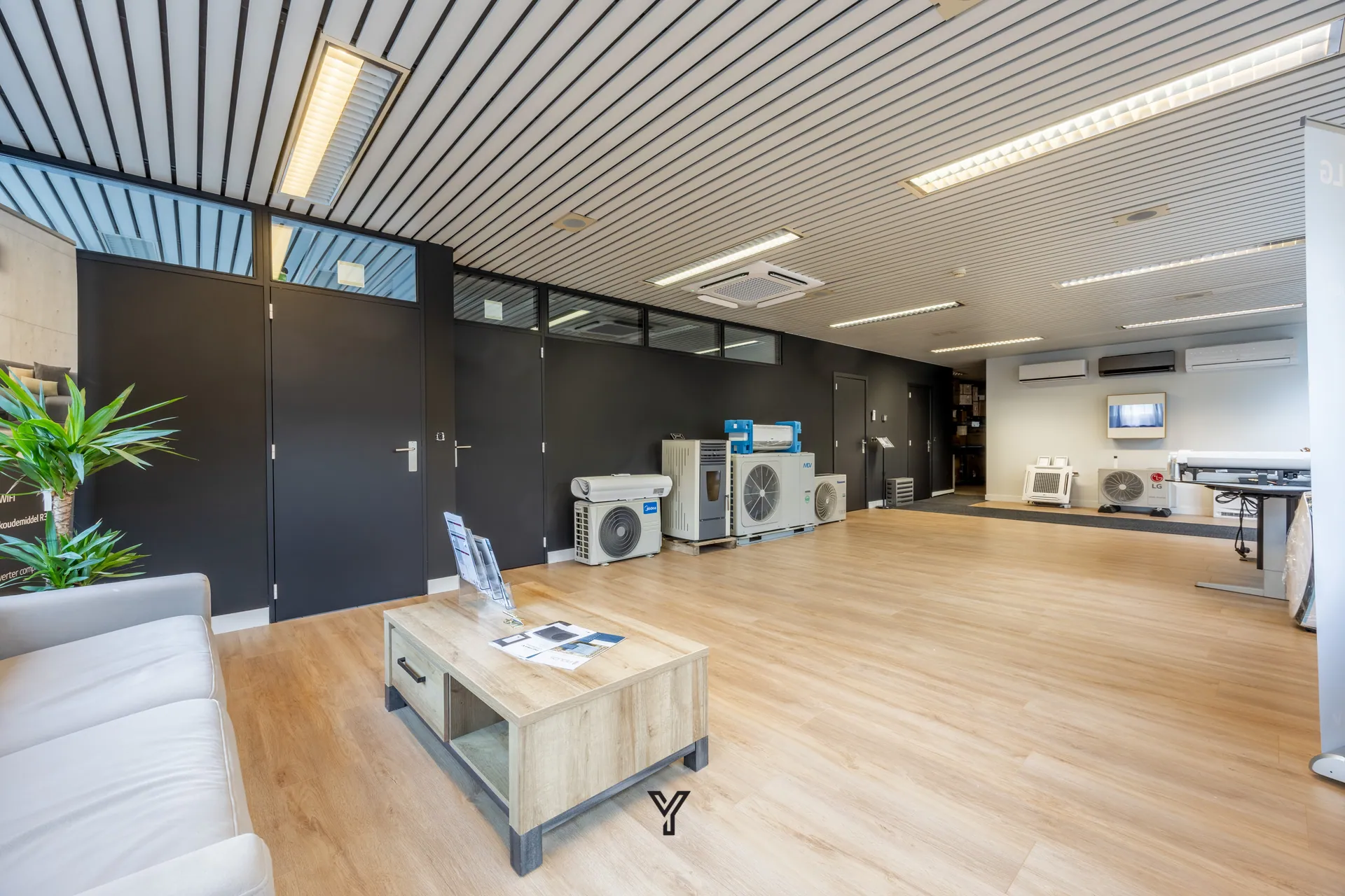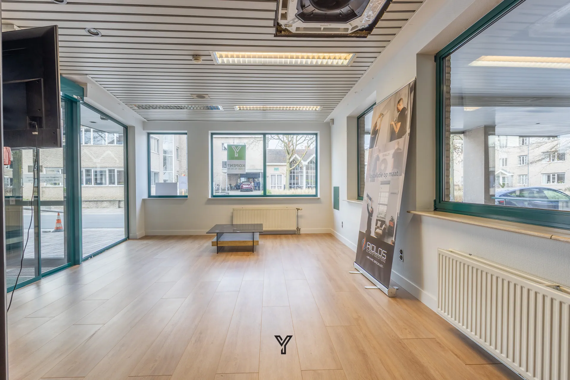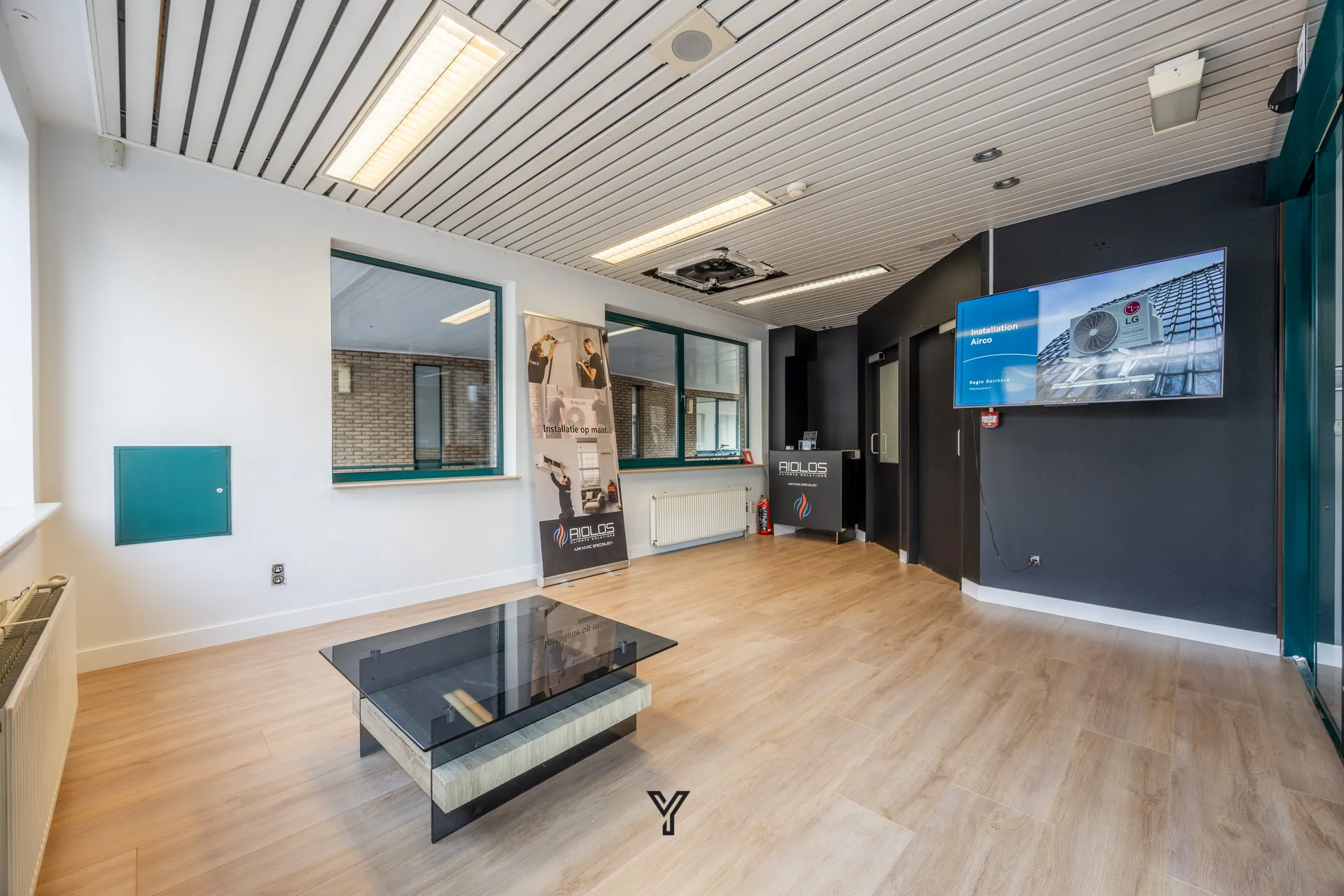 Het pand beschikt over een overdekte inkom, wat zorgt voor een verzorgde en professionele eerst indruk. Bij het binnenkomen vindt u een wachtplaats of toonzaalruimte, ideaal om klanten comfortabel te ontvangen of producten aantrekkelijk te presenteren. De centrale open ruimte biedt maximale flexibiliteit en kan volledig naar eigen wens worden ingericht op heden wordt dit gebruikt als opslagruimte. Daarnaast is er een apart bureel, perfect voor administratieve werkzaamheden of discreet klantenoverleg.