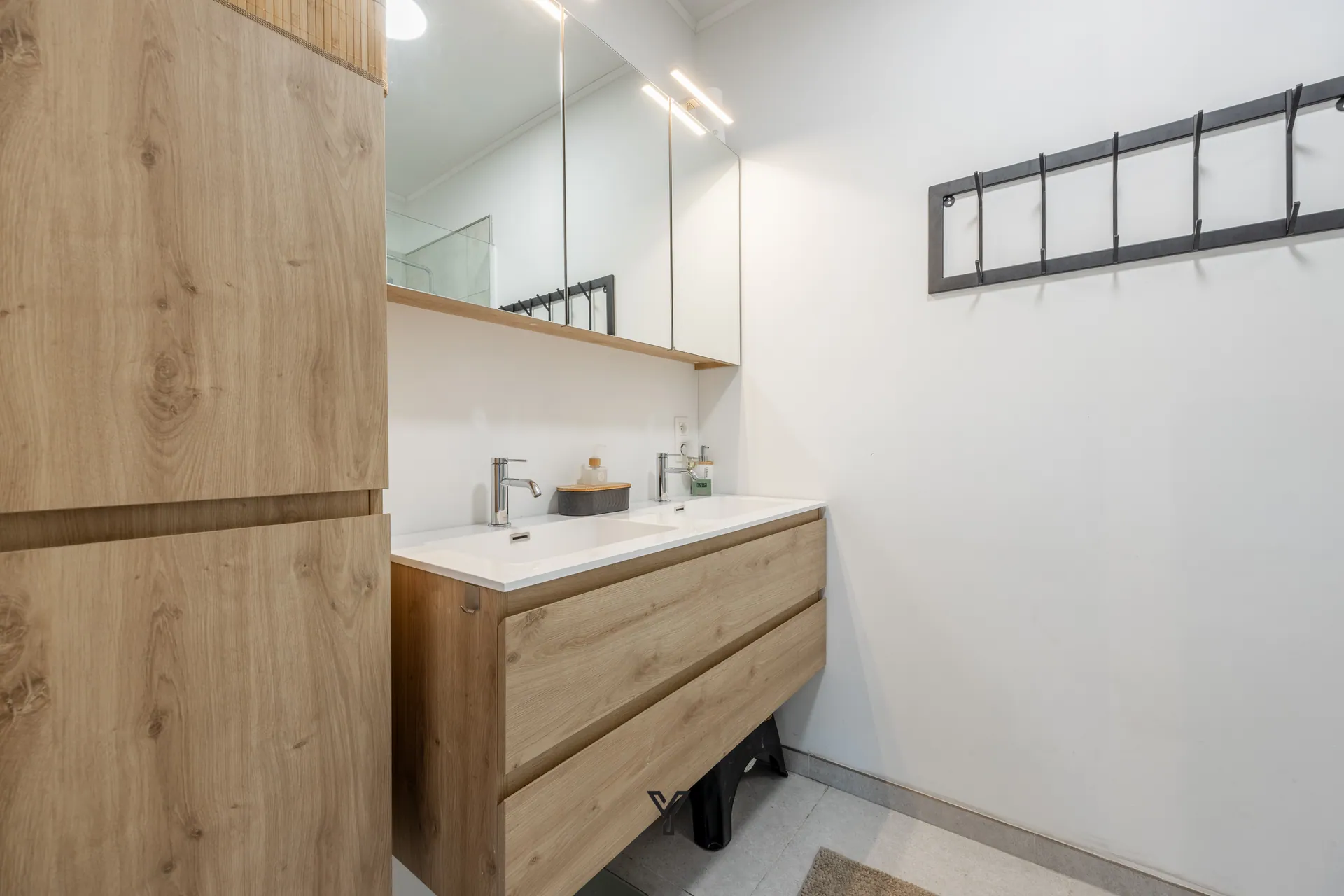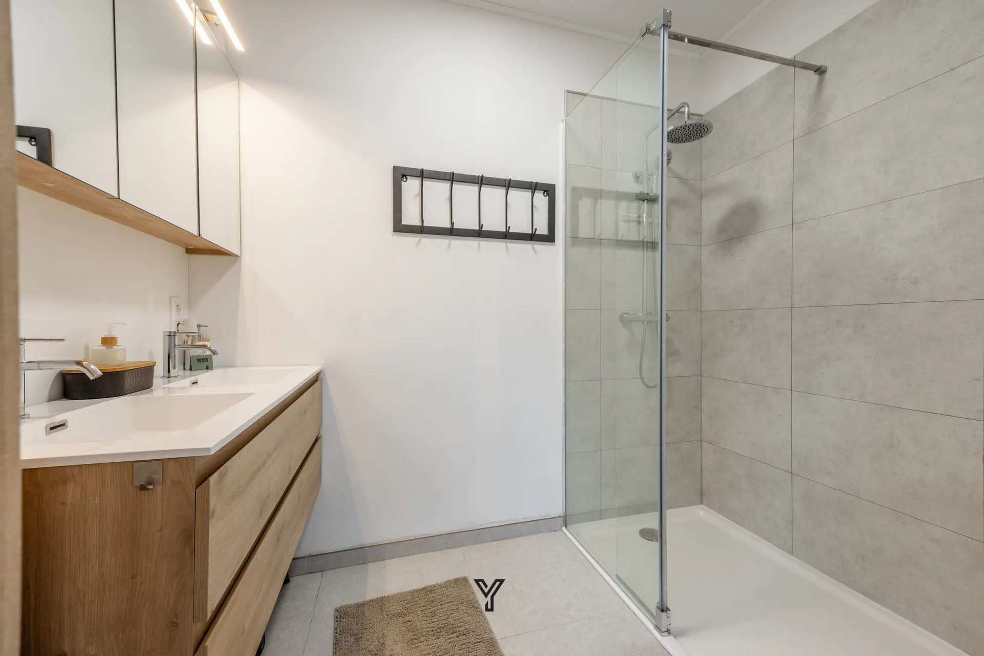 Dubbele lavabo in meubel en inloopdouche
