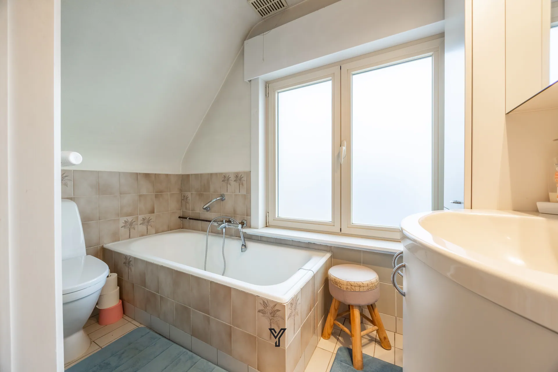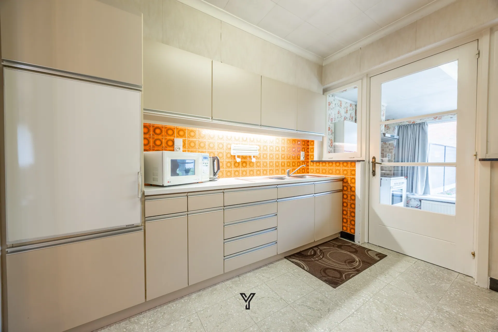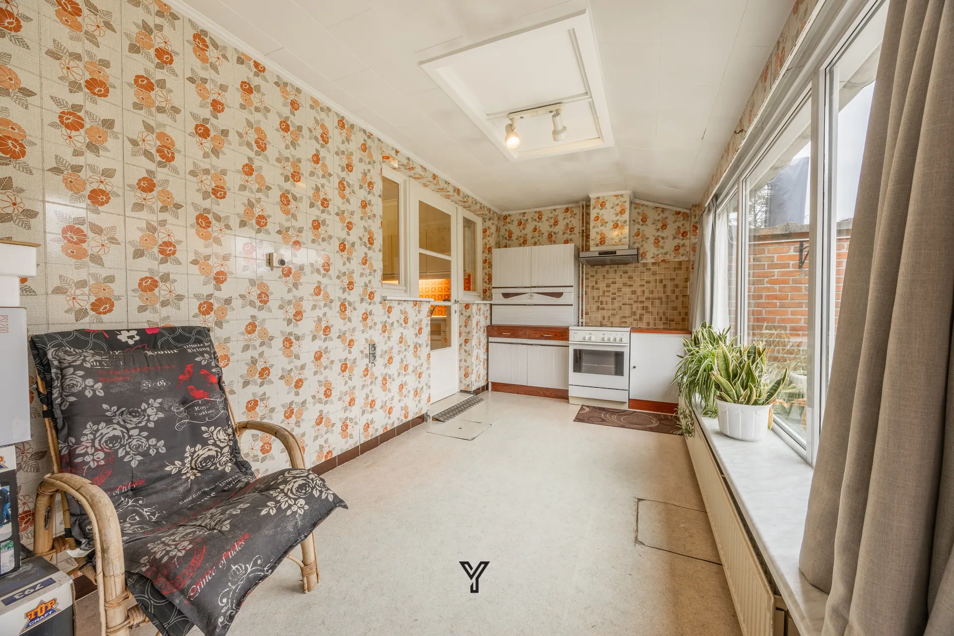 Aansluitend vinden we de ruime en functionele keuken, die uitgeeft op de veranda met prachtig zicht op de tuin. De goed onderhouden, zonnige tuin nodigt uit tot heerlijke zomermomenten in alle rust. Op het gelijkvloers zijn er verder nog een praktische was- en bergplaats en een apart gastentoilet.