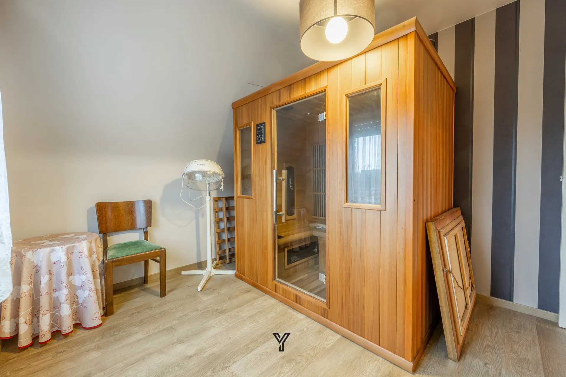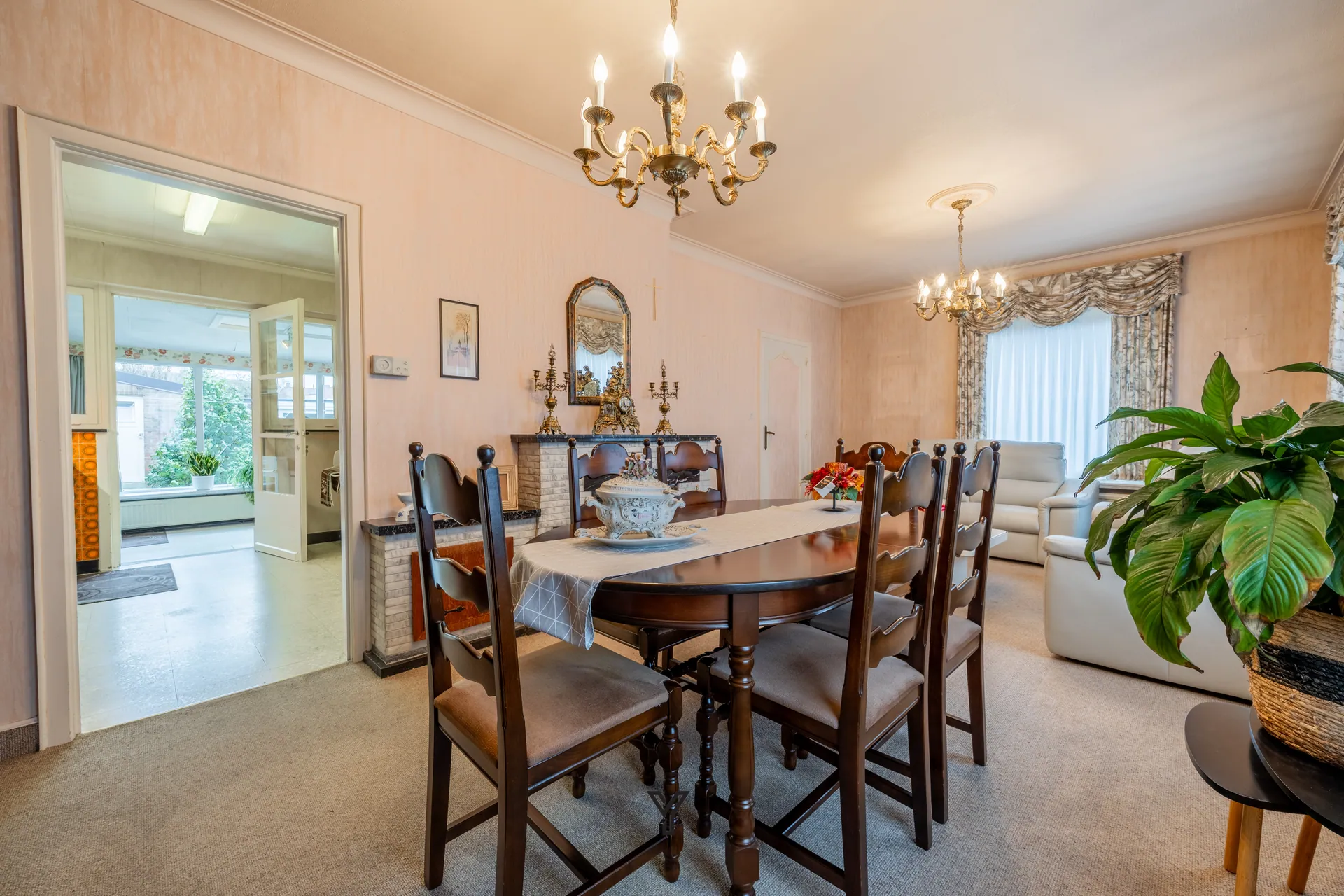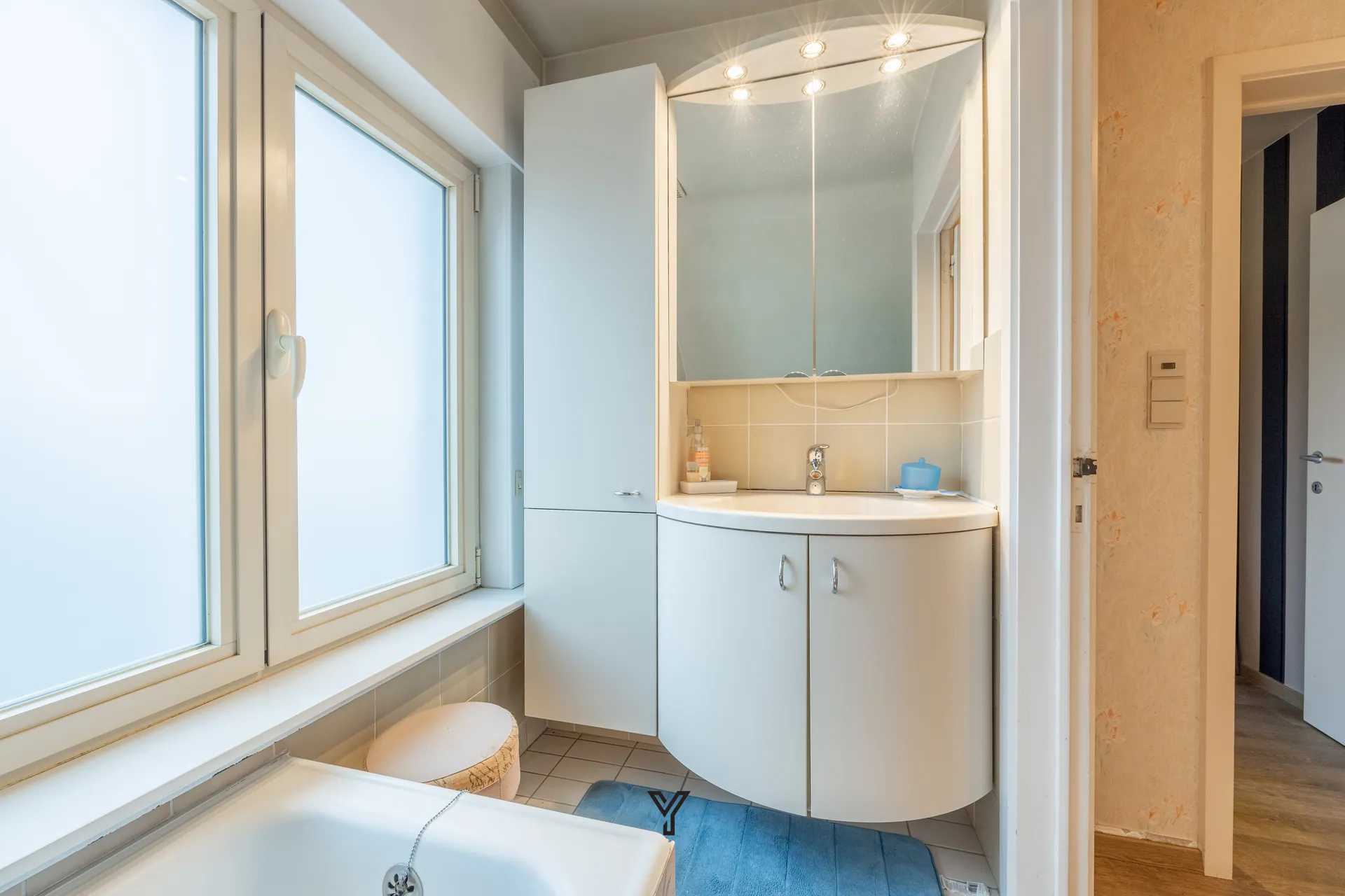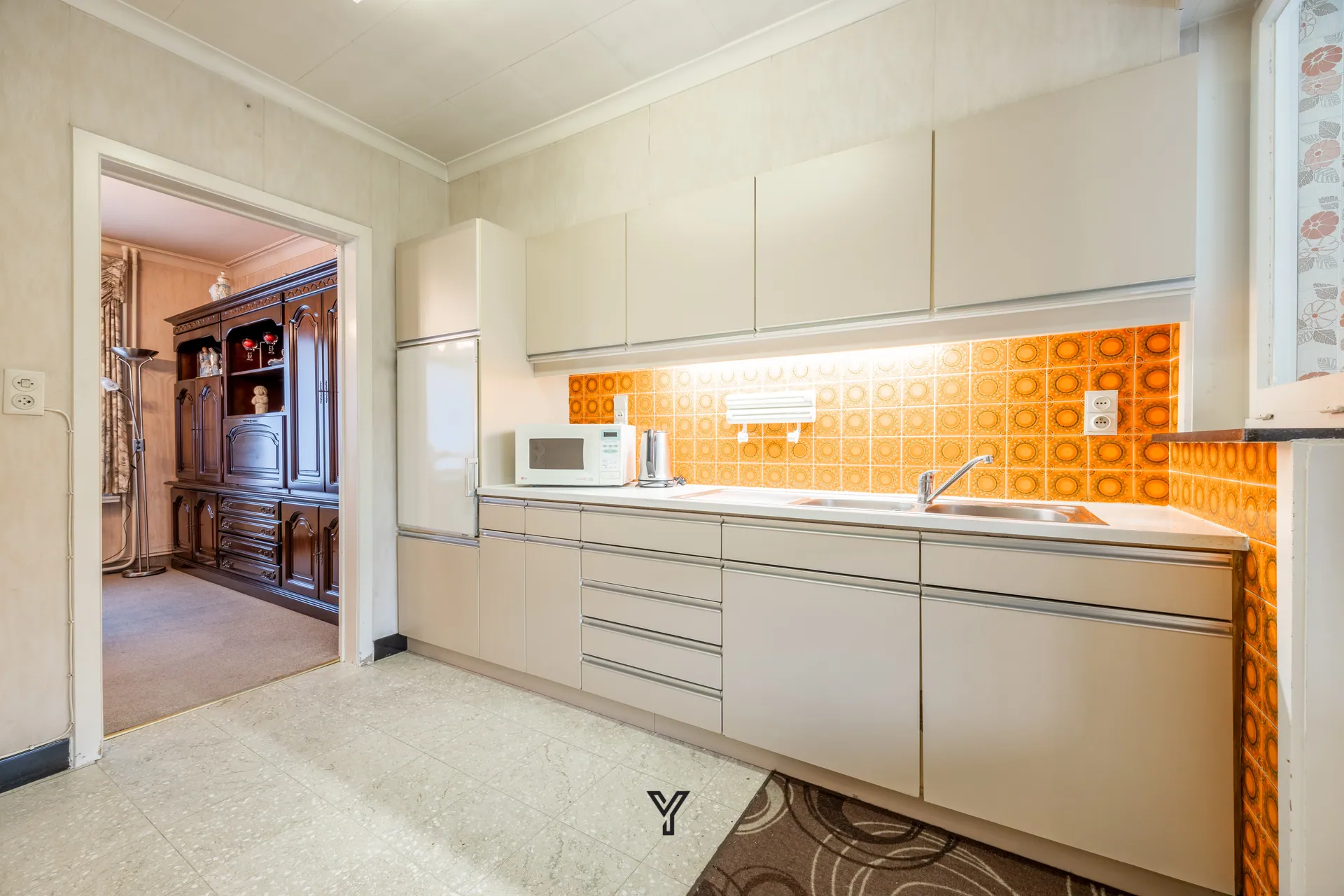 Aansluitend vinden we de ruime en functionele keuken, die uitgeeft op de veranda met prachtig zicht op de tuin. De goed onderhouden, zonnige tuin nodigt uit tot heerlijke zomermomenten in alle rust. Op het gelijkvloers zijn er verder nog een praktische was- en bergplaats en een apart gastentoilet.