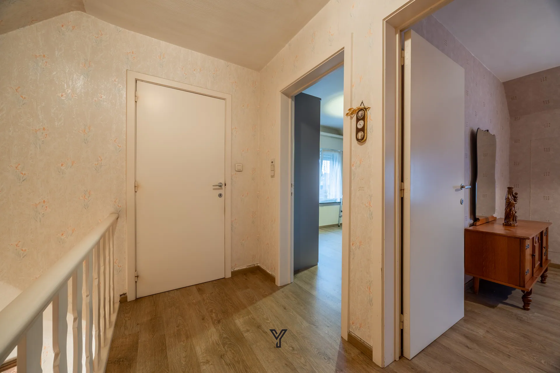 De eerste verdieping beschikt over drie ruime slaapkamers. Via de nachthal bereik je de badkamer, uitgerust met een ligbad, toilet en wastafel. De zolder biedt bijkomend opbergpotentieel. Dankzij de condenserende gasketel, hoogrendementsbeglazing en 12 zonnepanelen geniet deze woning van een gunstig EPC. Tot slot maakt de aangebouwde garage het geheel compleet. Mits wat liefde en persoonlijke toets kan dit huis uitgroeien tot jouw droomwoning. Benieuwd naar de troeven en mogelijkheden? Plan vandaag nog je bezoek in. Een echte topper in zijn soort!