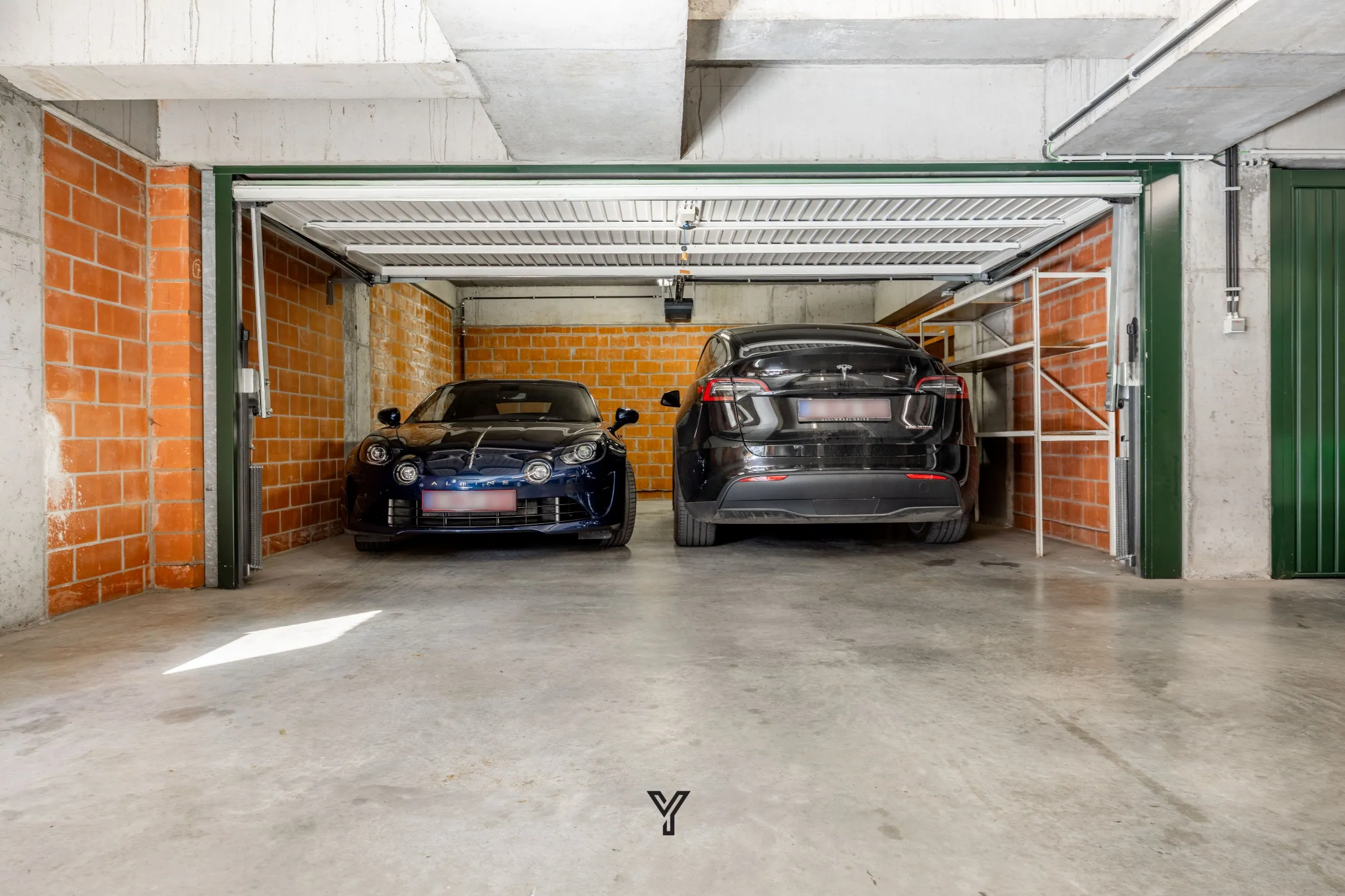 Via de lift bereiken we de eerste verdieping waar we het appartement binnenkomen via de inkom. Door de glazen deur bereiken we de gigantische leefruimte die baadt in het natuurlijk licht dankzij de talrijke grote raampartijen. De ruime keuken is volledig ingericht en biedt alle moderne gemakken voor de enthousiaste thuiskok. Een praktische berging biedt extra opbergruimte, terwijl het terras de perfecte plek is om buiten te ontspannen en te genieten van de frisse lucht. De drie grote slaapkamers, badkamer met ligbad en douchekamer maken dit appartement compleet. Dankzij de dubbele garage met elektrische poort heeft u altijd een veilige plek voor uw voertuigen, deze kan worden aangekocht mits een meerprijs. De dubbele garage is gesitueerd op de gelijkvloerse verdieping, van hieruit kan het appartement bereikt worden met de lift en de trap.