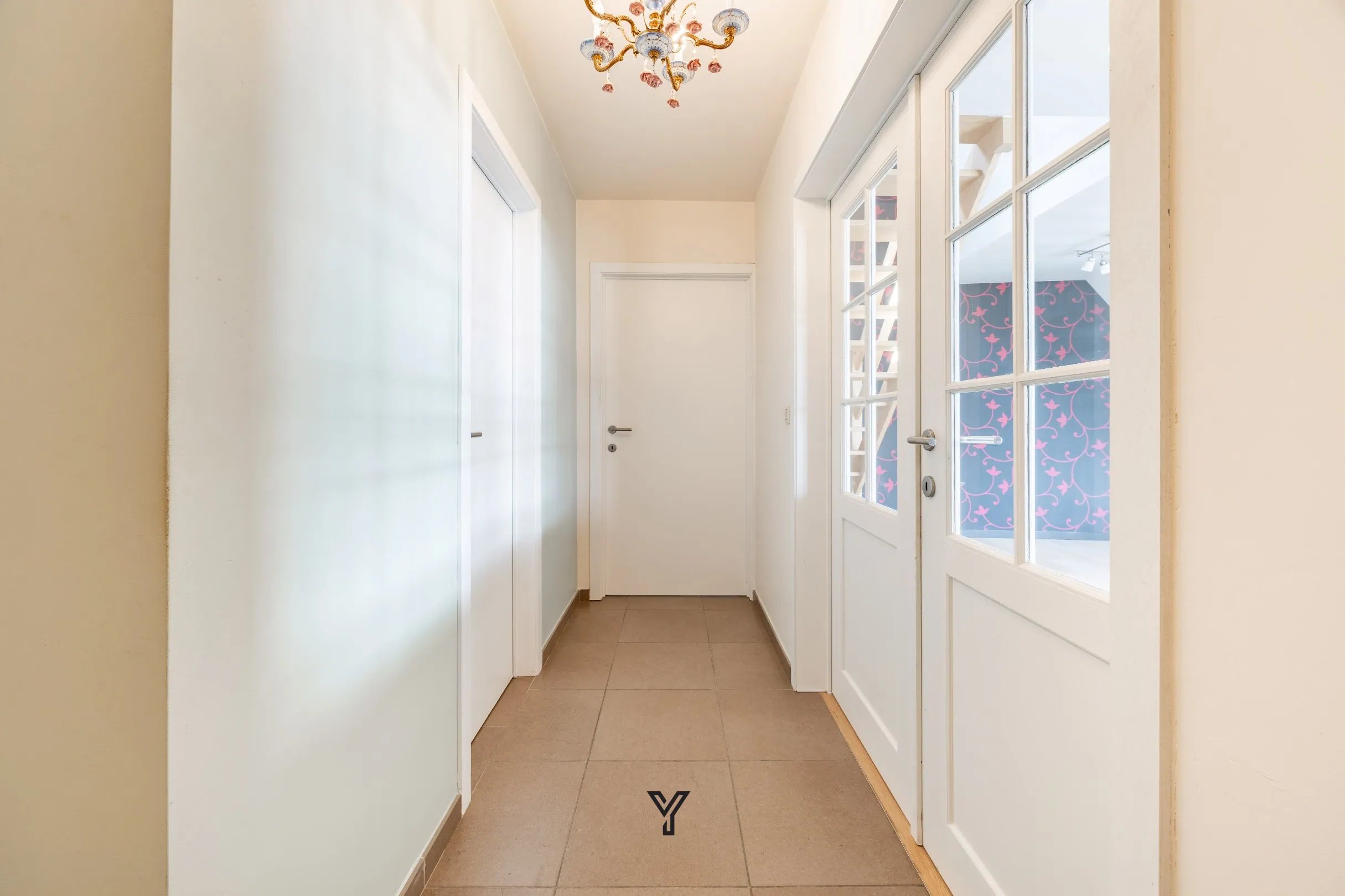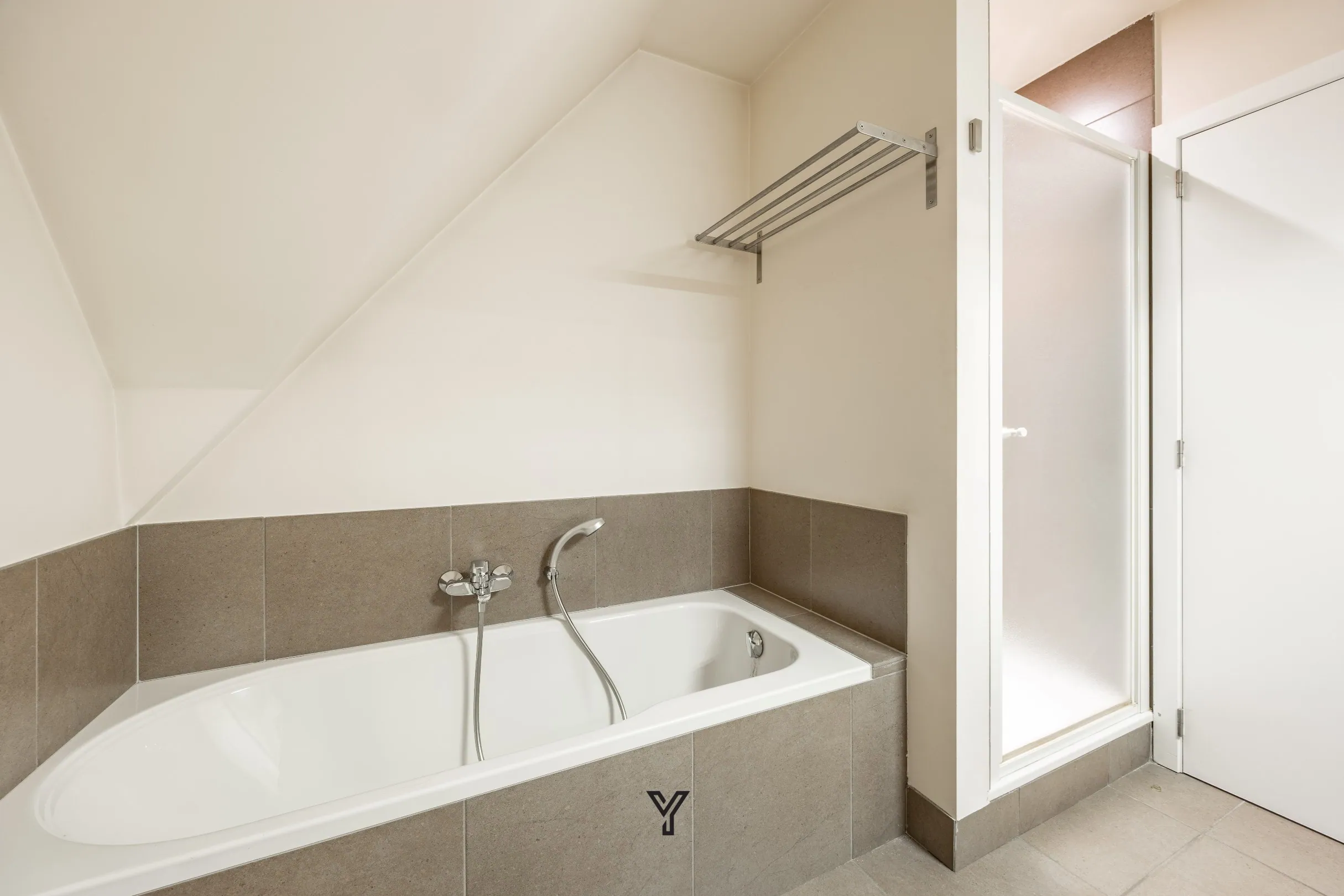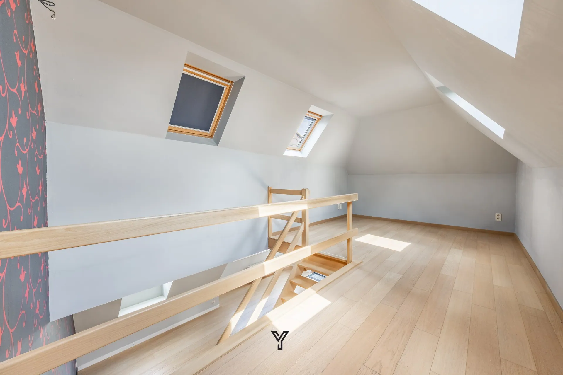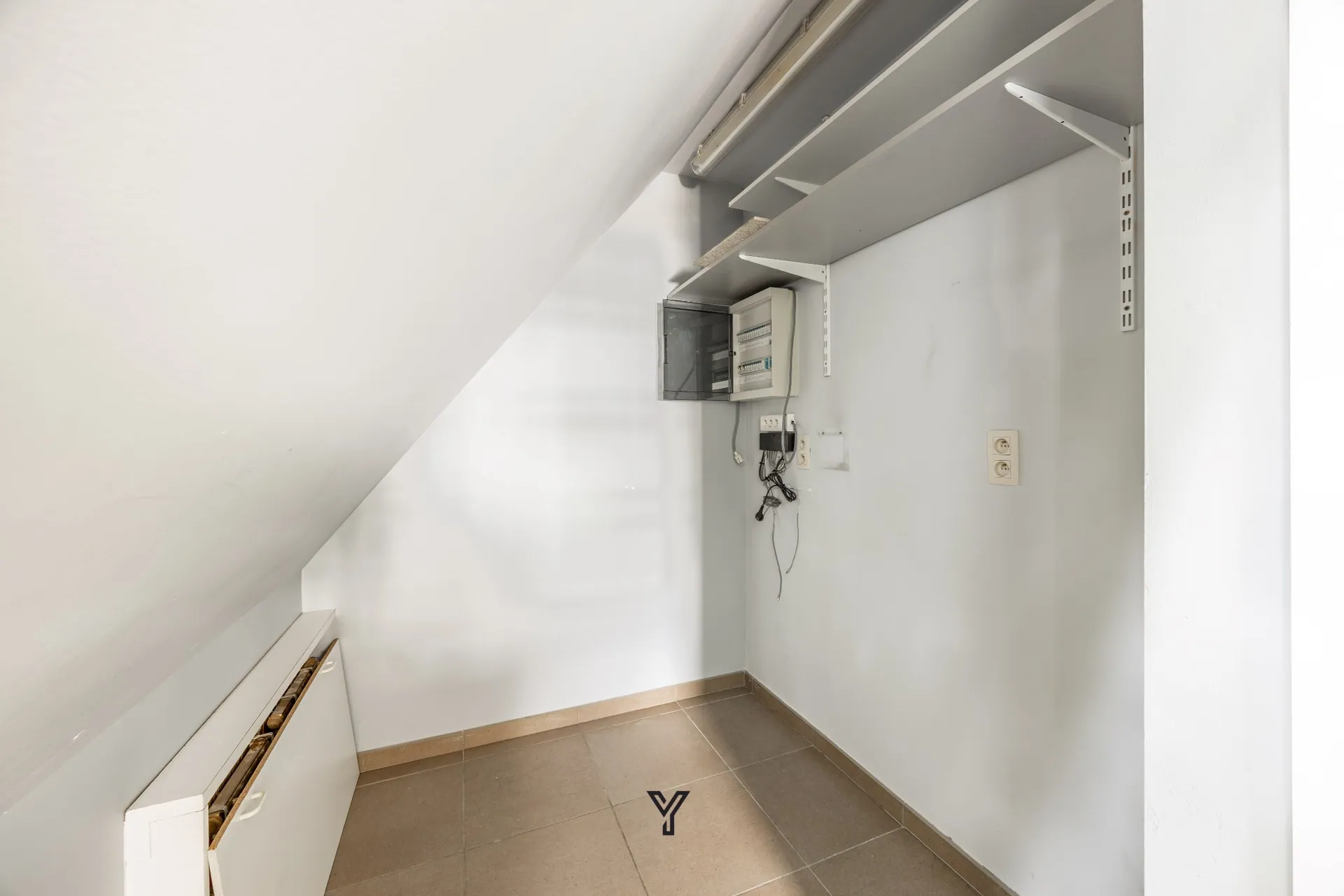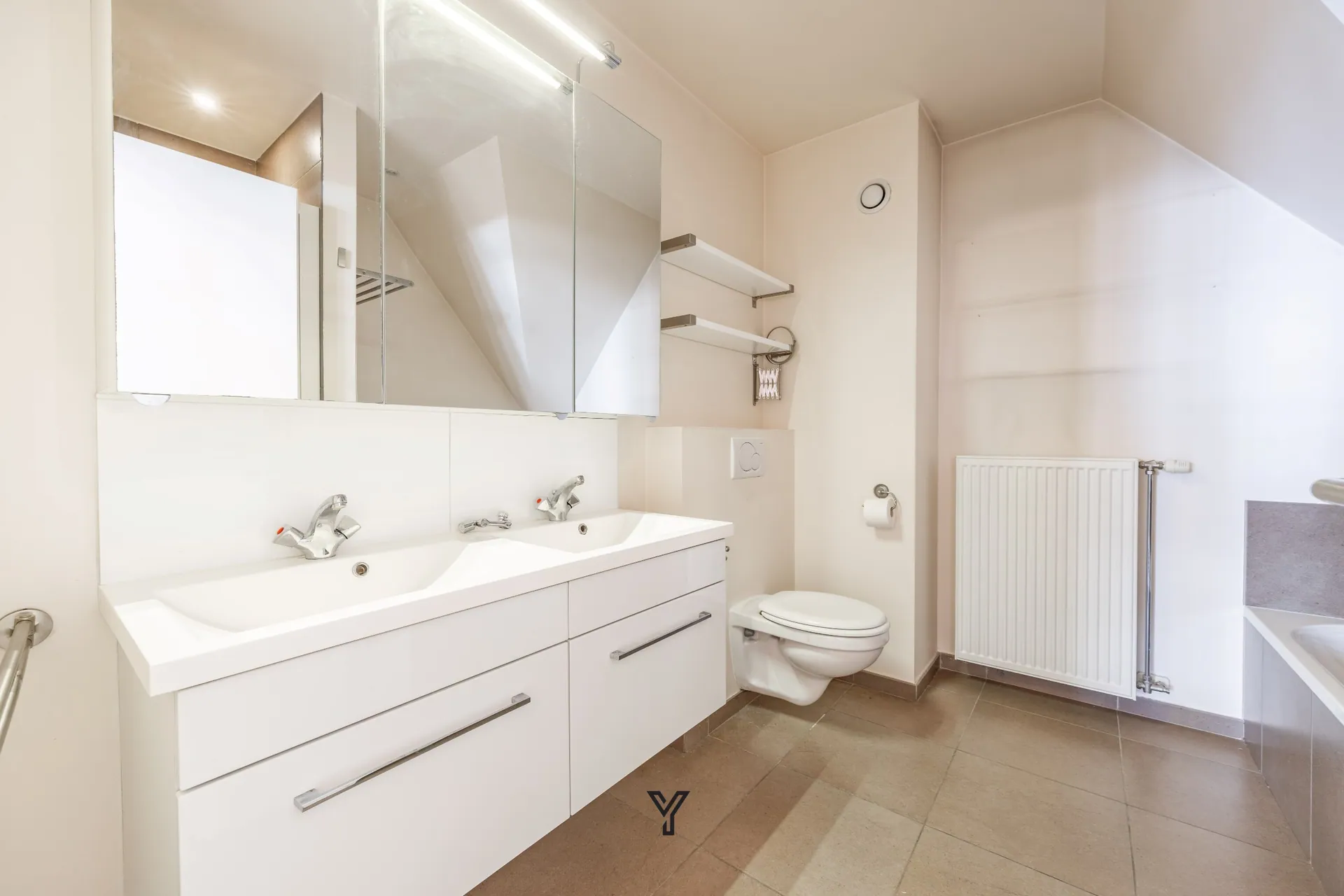 In het hart van Harelbeke vindt u deze instapklare penthouse, gelegen op de derde verdieping van de verzorgde residentie St. Paul. Het appartement is eenvoudig bereikbaar dankzij de lift. Via de private inkomhal komt u in de ruime lichtrijke woonkamer. Dankzij het schuifraam heeft u directe toegang tot het zonnige terras. Aansluitend bevindt zich de volledig uitgeruste keuken, voorzien van alle nodige toestellen. Daarnaast is er een praktische berging. De nachthal leidt naar twee volwaardige slaapkamers en een verzorgde badkamer, uitgerust met dubbele lavabo in meubel, toilet, instapdouche én ligbad. Via de trap bereikt u de open mezzanine, perfect in te richten als extra slaapkamer, bureau of hobbyruimte.