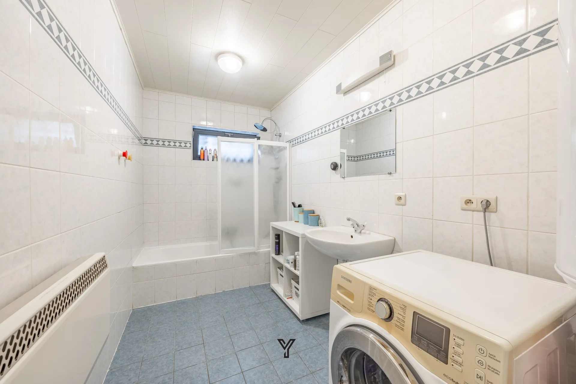 Badkamer met lavabo en ligbad