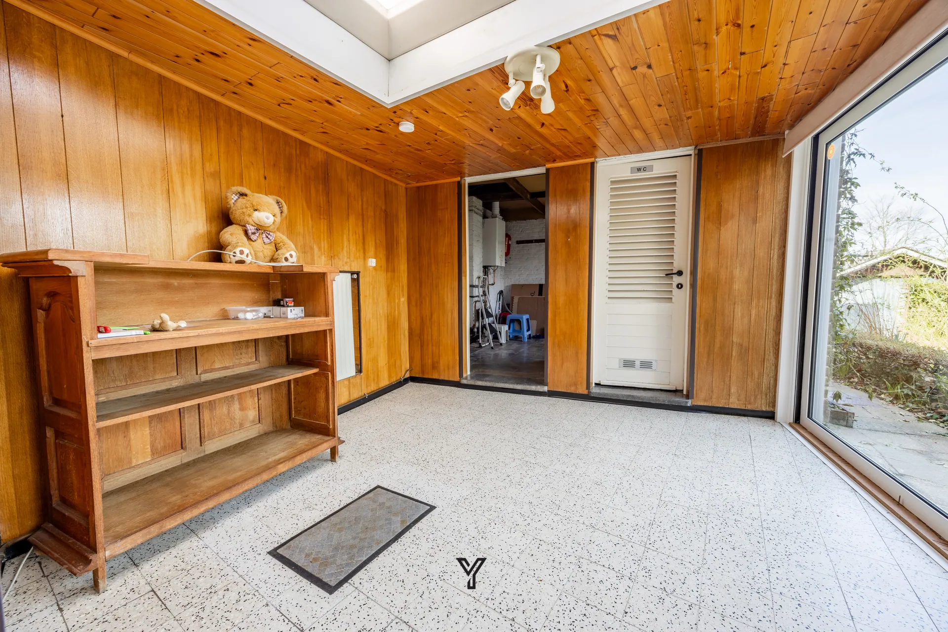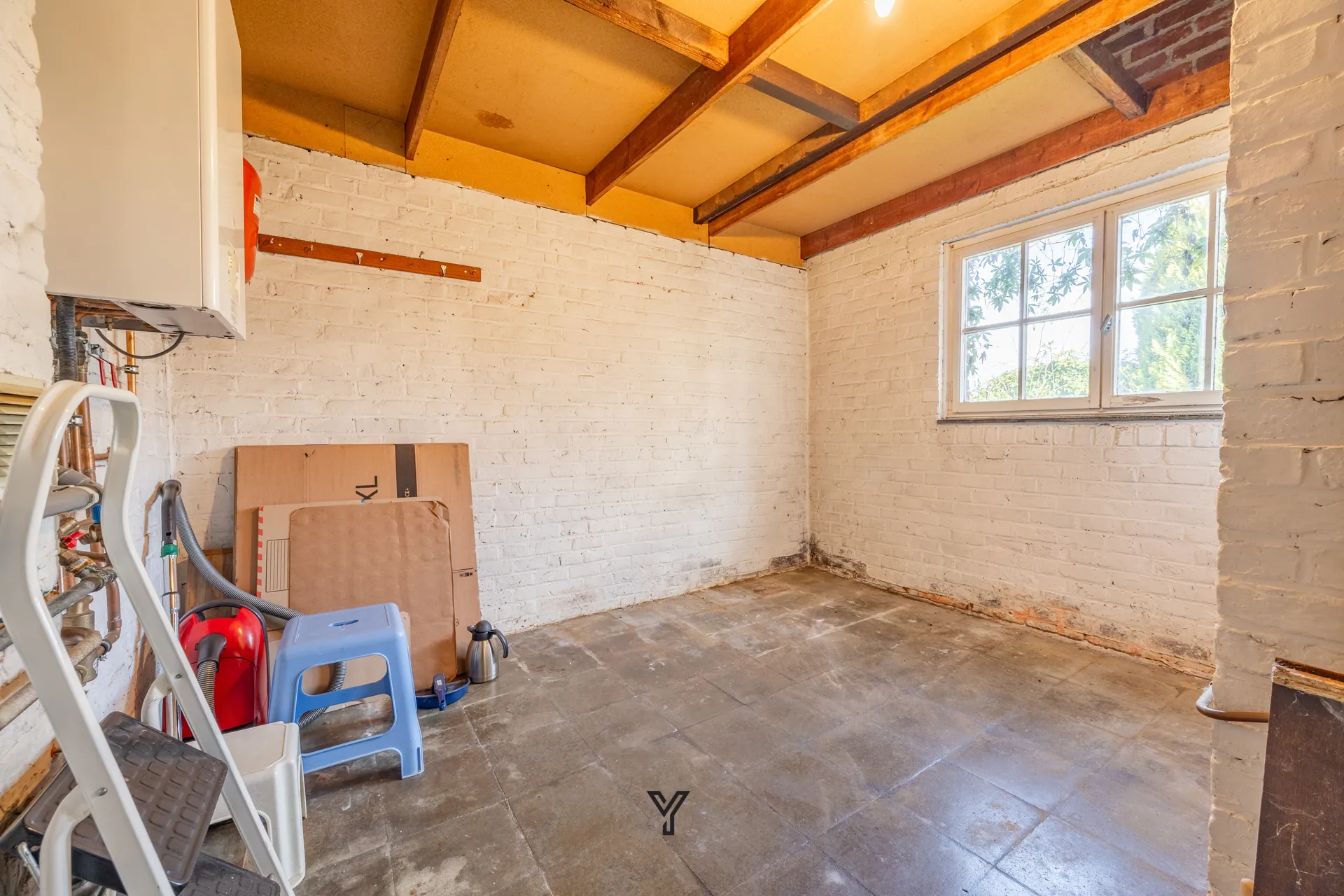 Verder vinden we op het gelijkvloers een polyvalente ruimte die perfect kan dienen als bureau of veranda, met aansluitend een apart toilet. Via deze ruimte bereiken we de praktische berging/wasplaats met bijkomende opbergruimte.