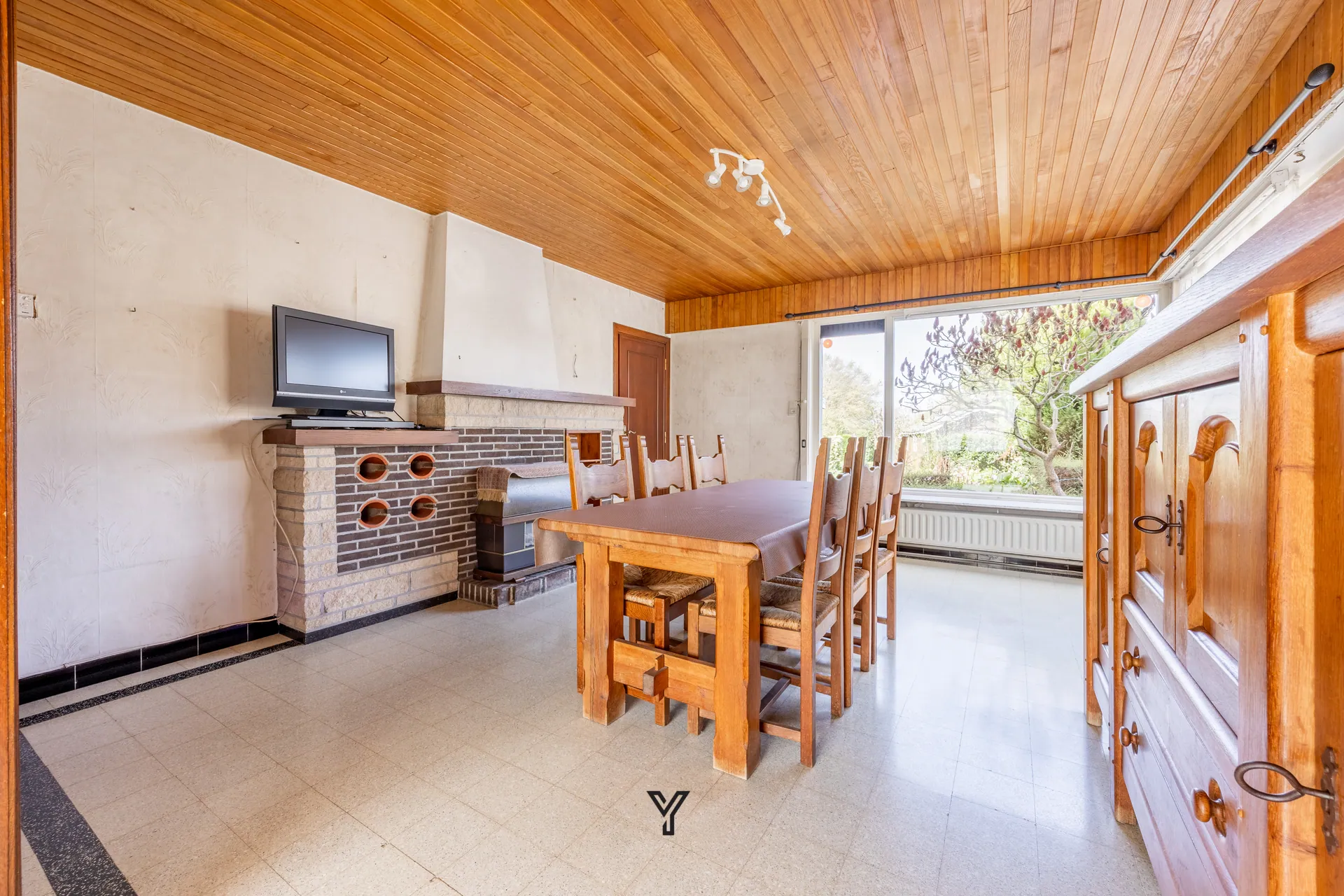 Bij het betreden van de woning komen we in de inkomhal, die toegang biedt tot de lichtrijke leefruimte met gezellige zit- en eetplaats. Aansluitend bevindt zich de gesloten keuken, uitgerust met een elektrische kookplaat, oven en spoelbak. Vanuit de keuken is er toegang tot de kelder, ideaal voor extra stockage.
