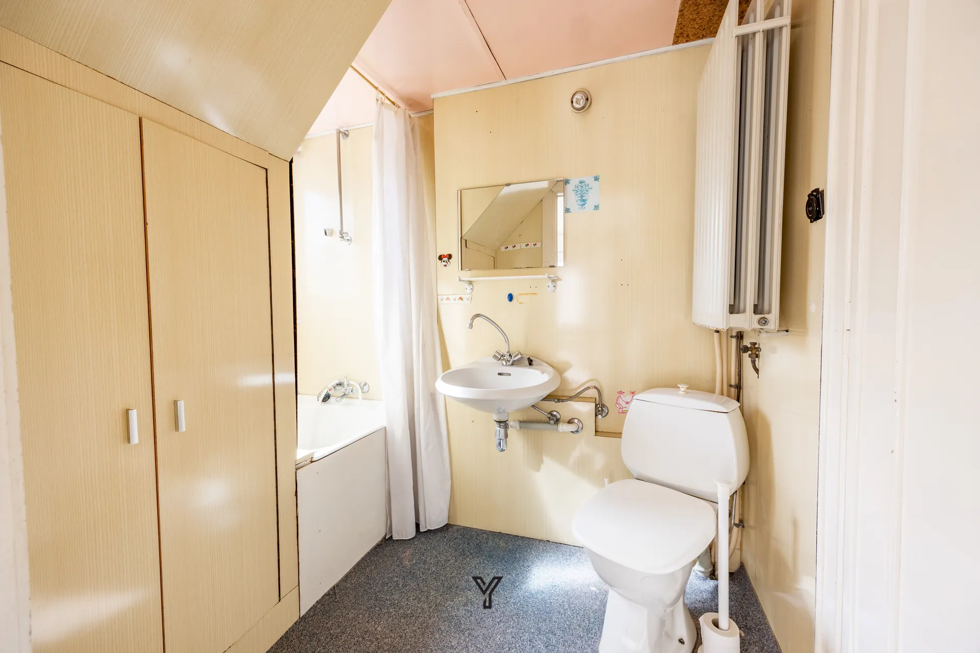 Lavabo, zitbad met douchemogelijkheid, toilet en ingemaakte kast