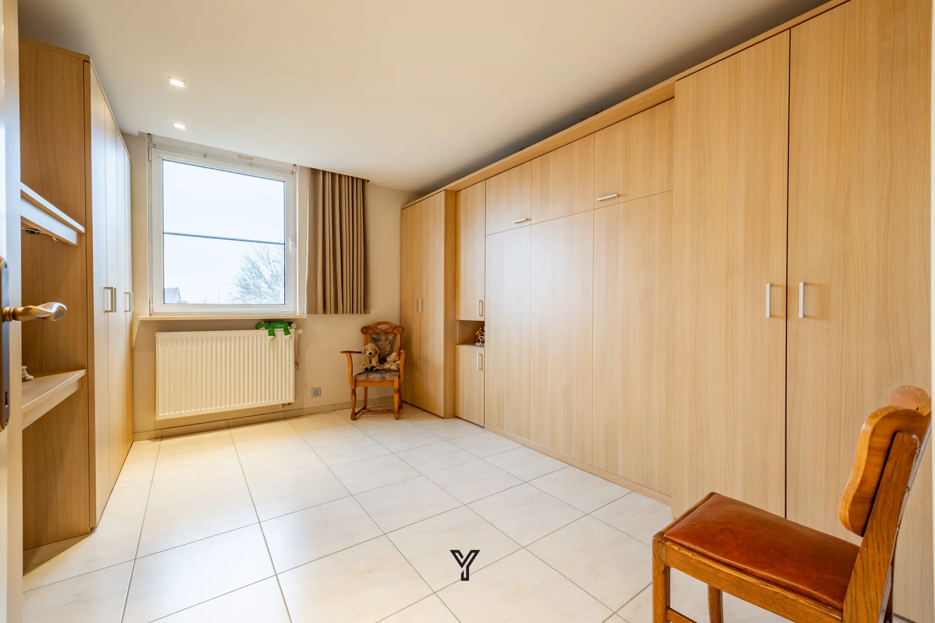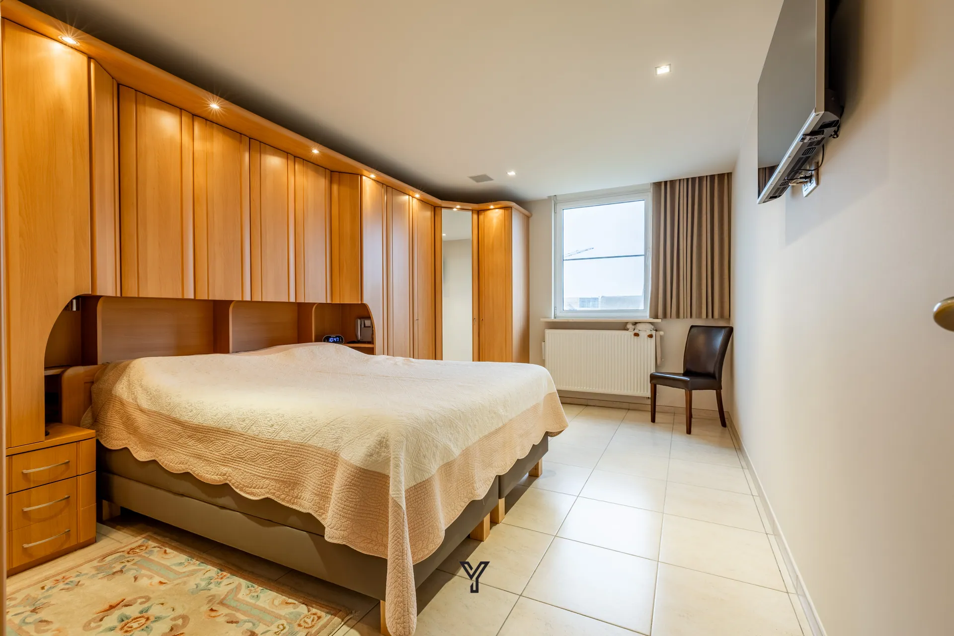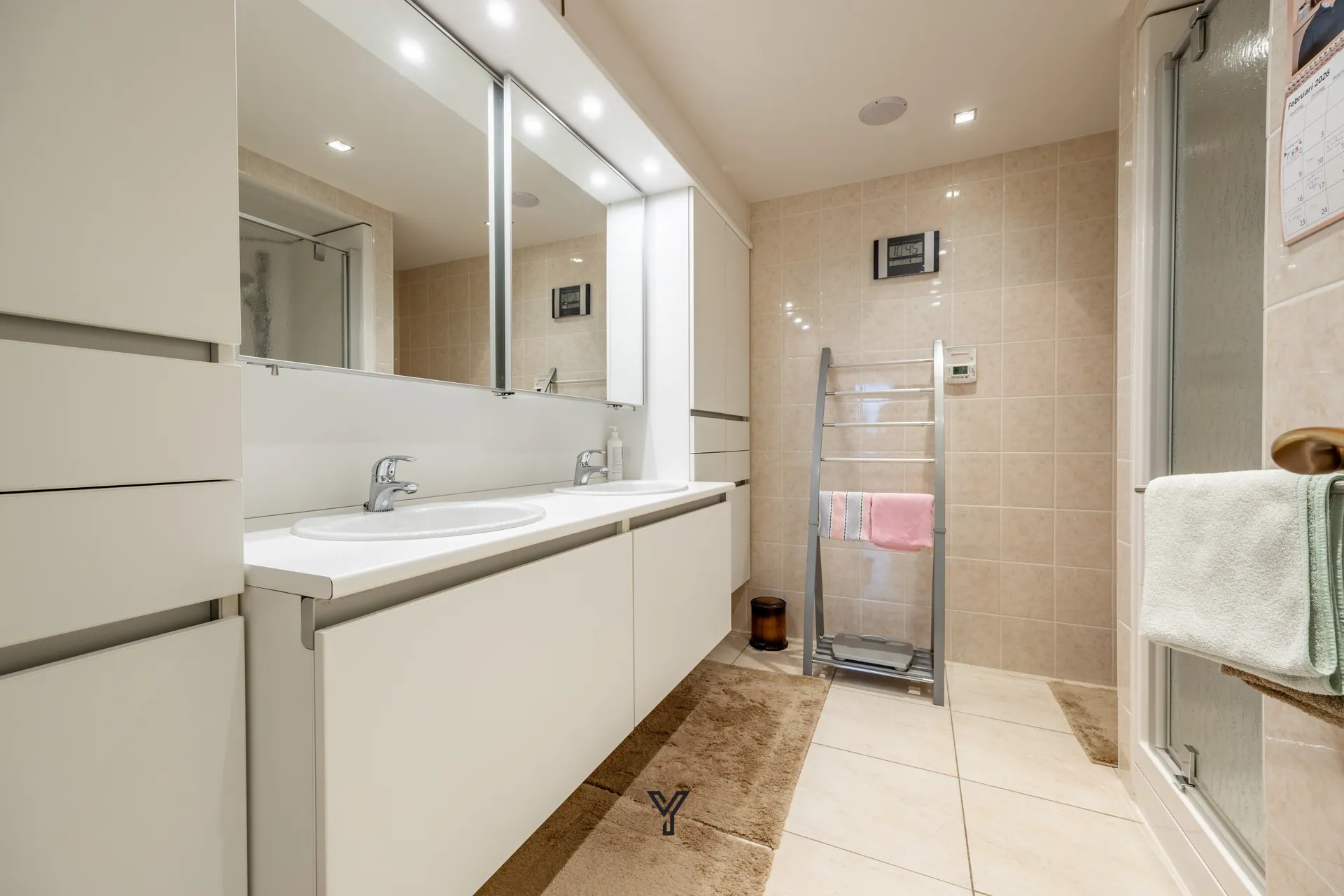Deze woongelegenheid beschikt over drie volwaardige slaapkamers. Momenteel ingericht als hoofdslaapkamer, logeerkamer en bureau – perfect voor thuiswerk, hobbyruimte of logerende (klein)kinderen. De badkamer is stijlvol afgewerkt met een dubbel lavabomeubel en een comfortabele douche, daar bevindt zich ook een tweede toilet.