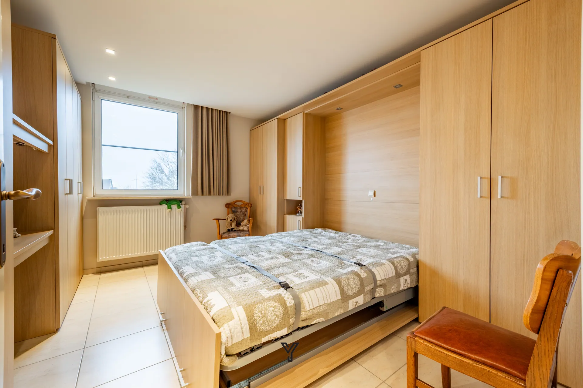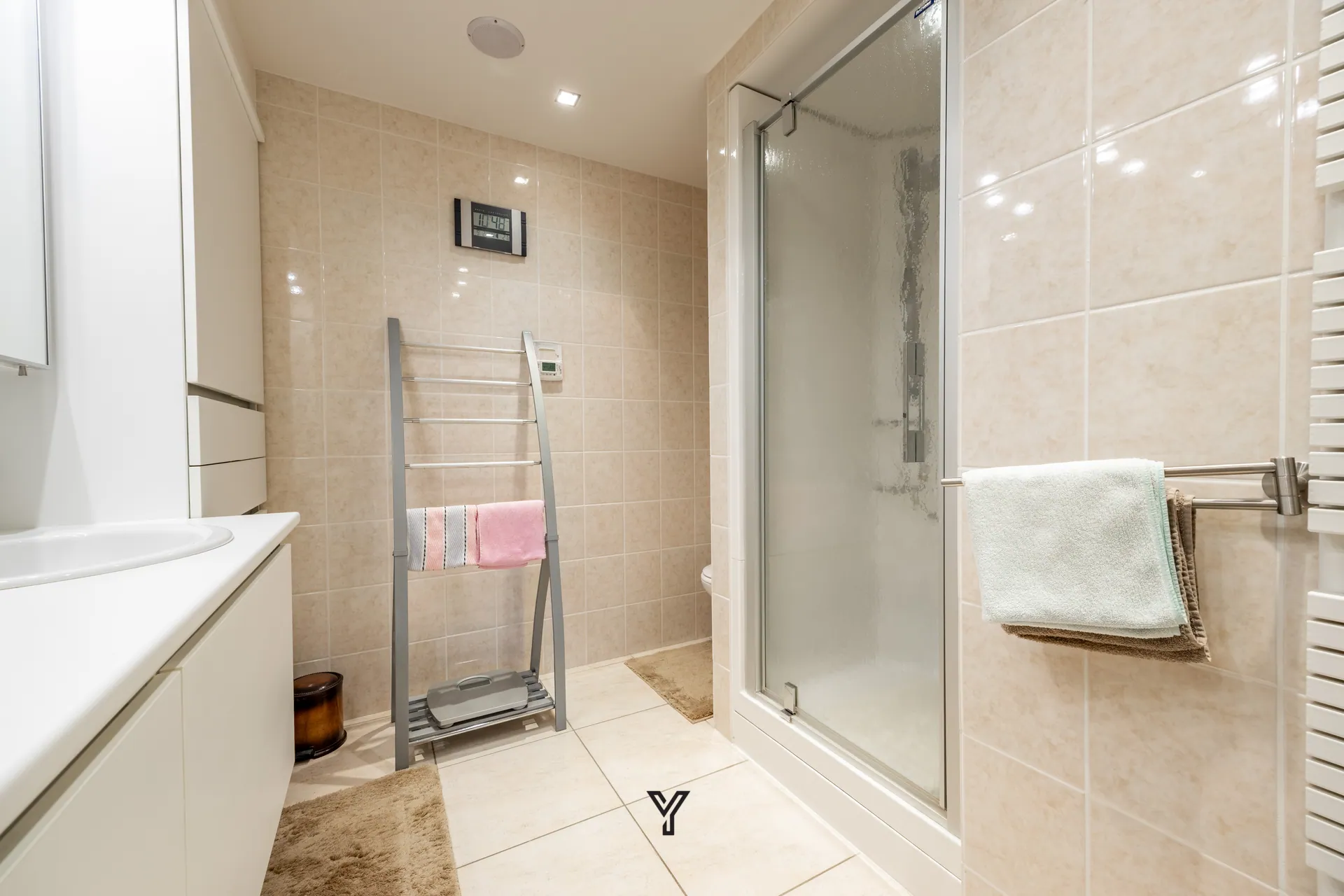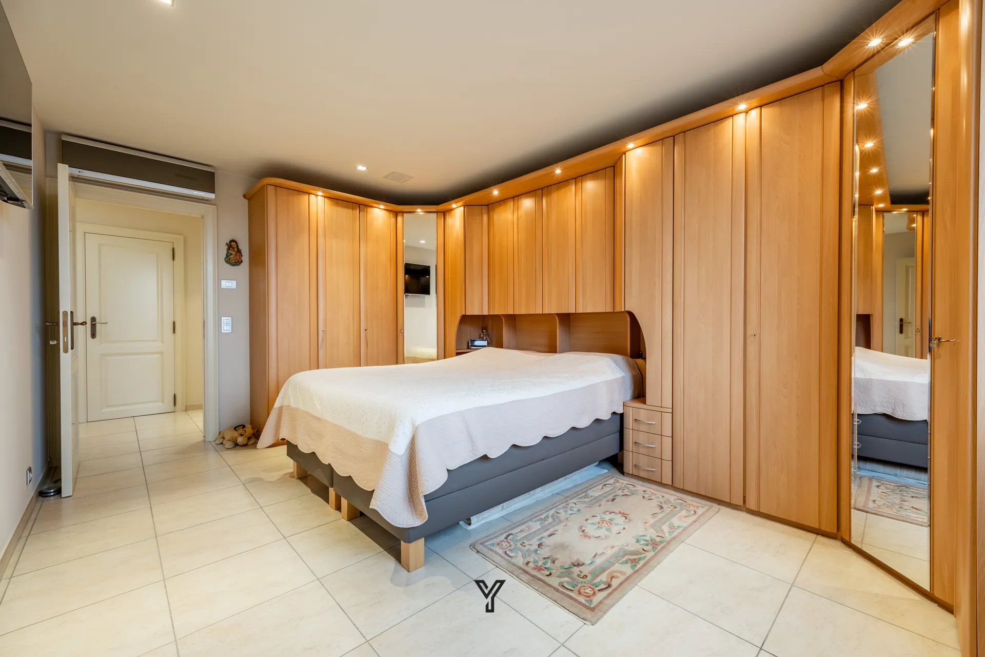 Deze woongelegenheid beschikt over drie volwaardige slaapkamers. Momenteel ingericht als hoofdslaapkamer, logeerkamer en bureau – perfect voor thuiswerk, hobbyruimte of logerende (klein)kinderen. De badkamer is stijlvol afgewerkt met een dubbel lavabomeubel en een comfortabele douche, daar bevindt zich ook een tweede toilet.