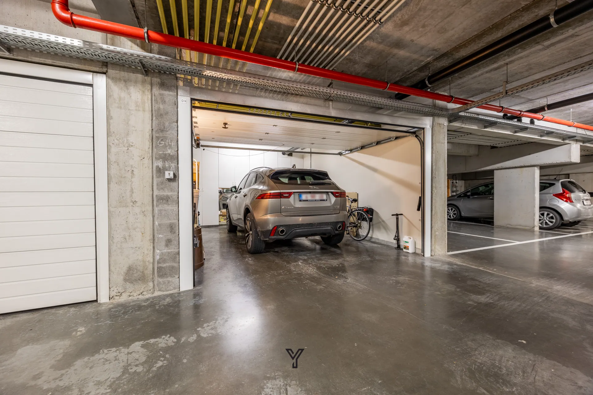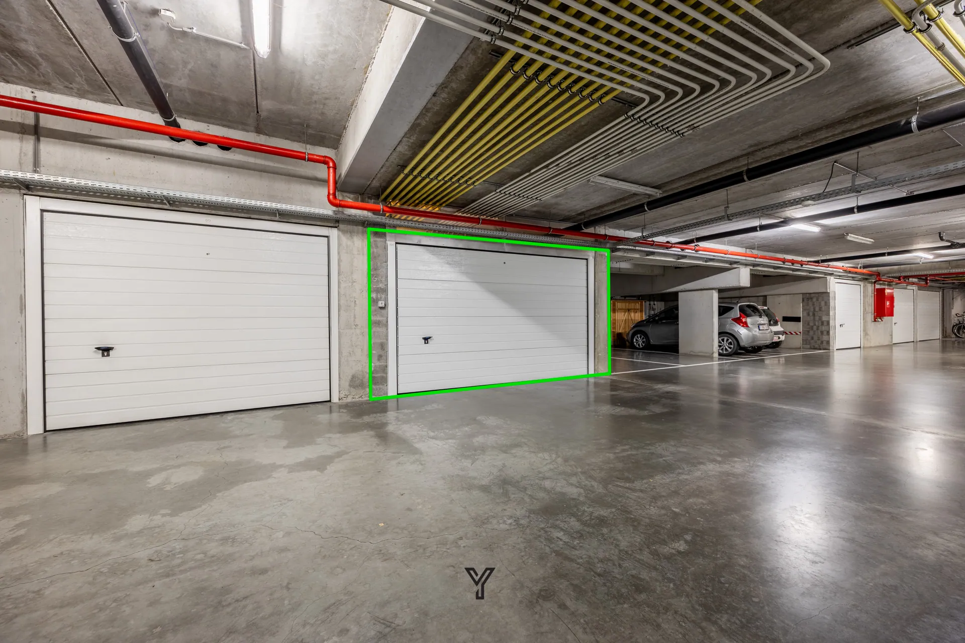 Met de lift bereik je vlot de ondergrondse verdieping. Eén ruime garage met ingebouwde kasten is inbegrepen in de prijs. Er bestaat bovendien de mogelijkheid om een tweede grote garage aan te kopen.