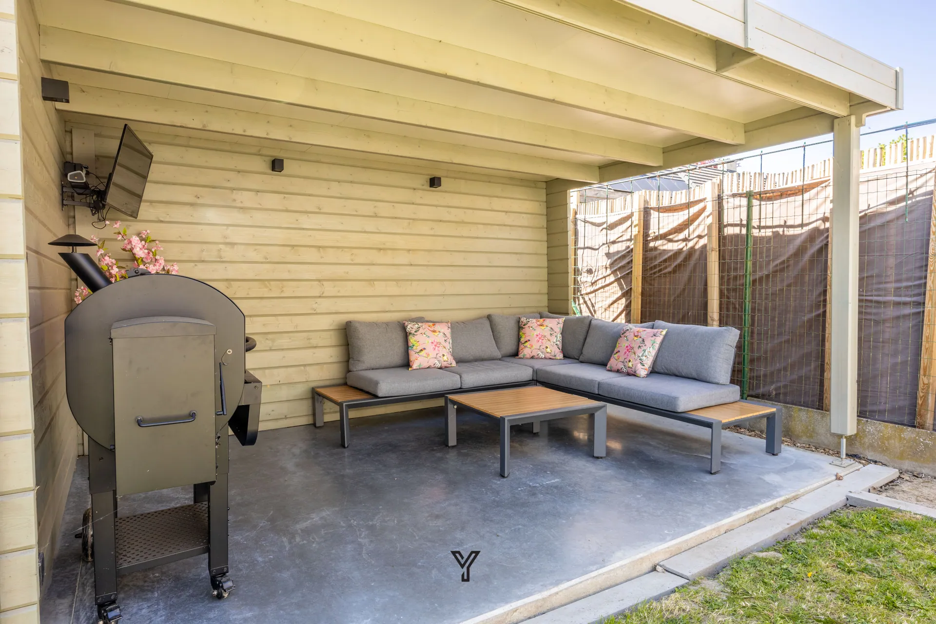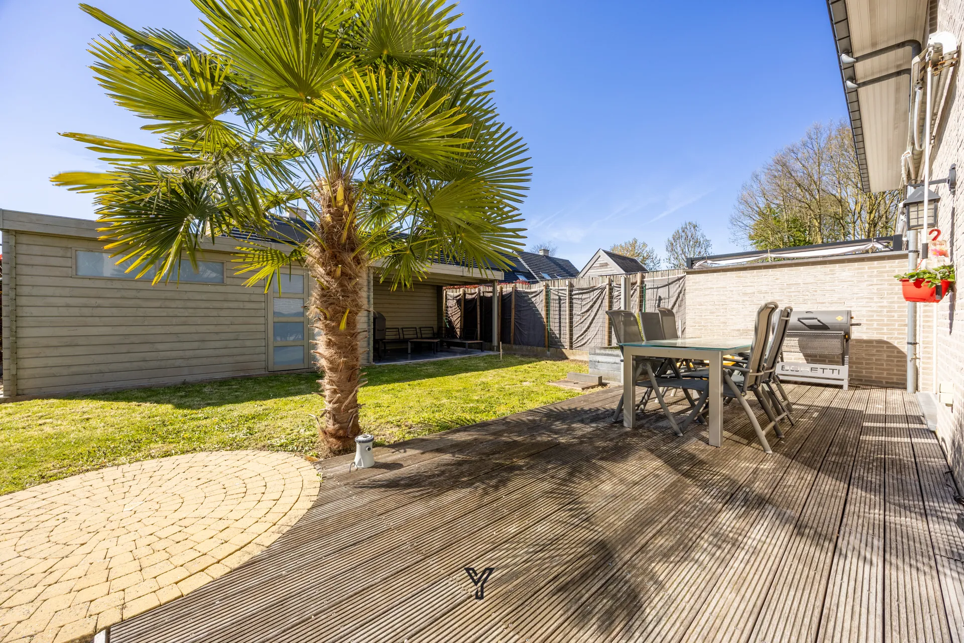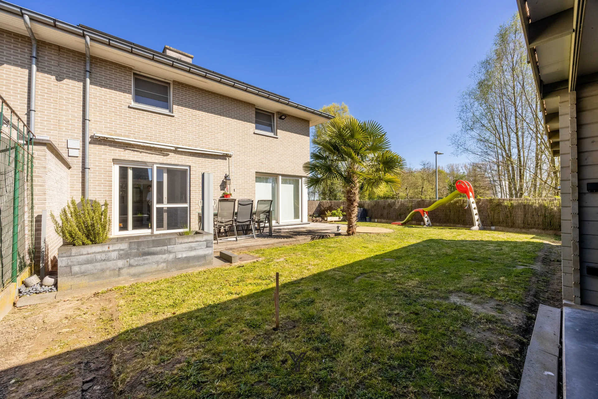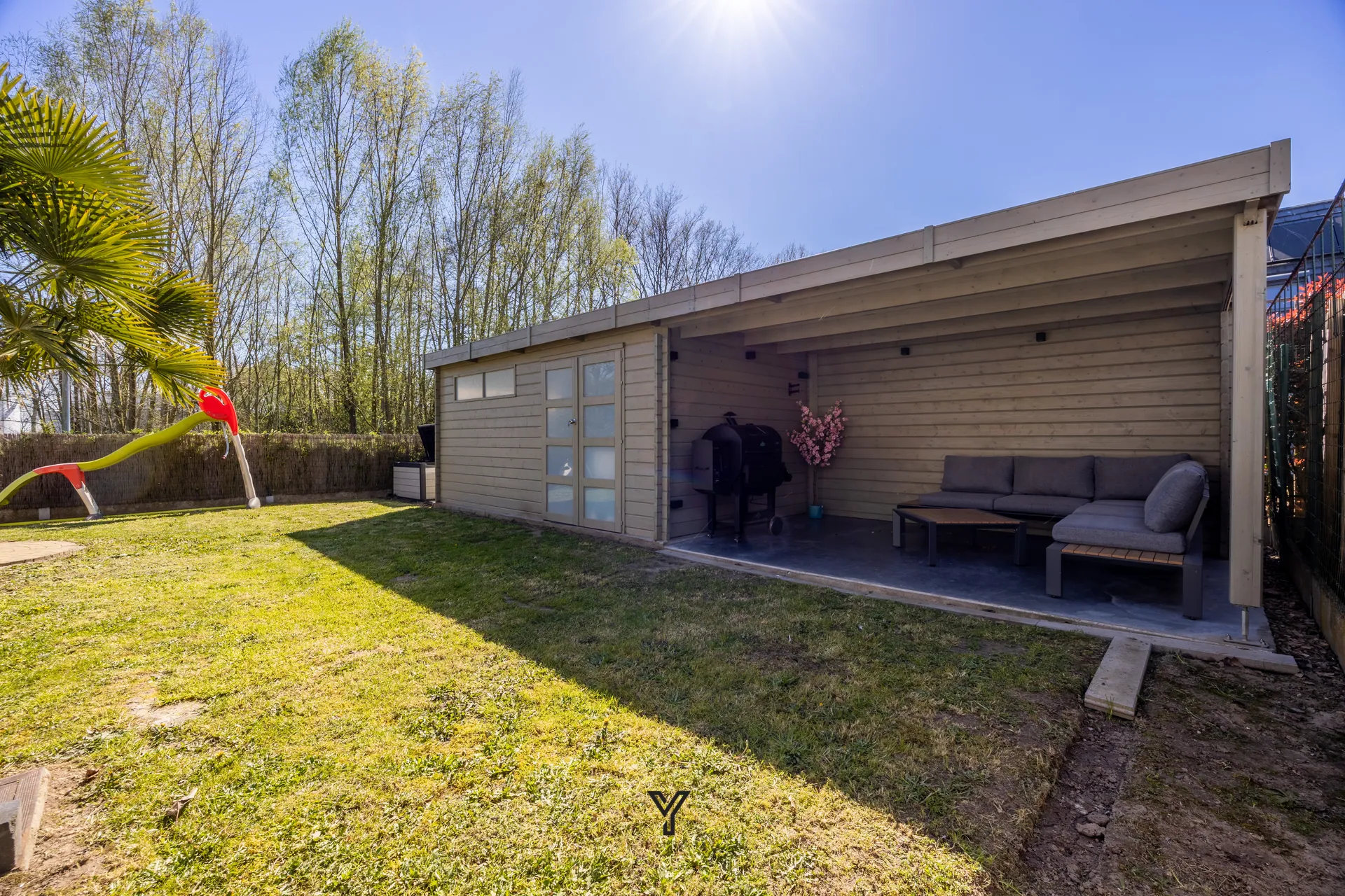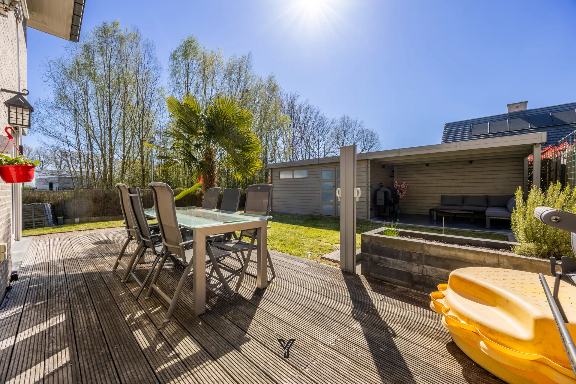 De buitenruimte is een absolute troef: de zuidwestgerichte tuin met terras geniet de hele dag van de zon en vormt de ideale plek om te ontspannen. Bovendien beschikt de woning over een tuinberging en een sfeervolle overdekte loungehoek.