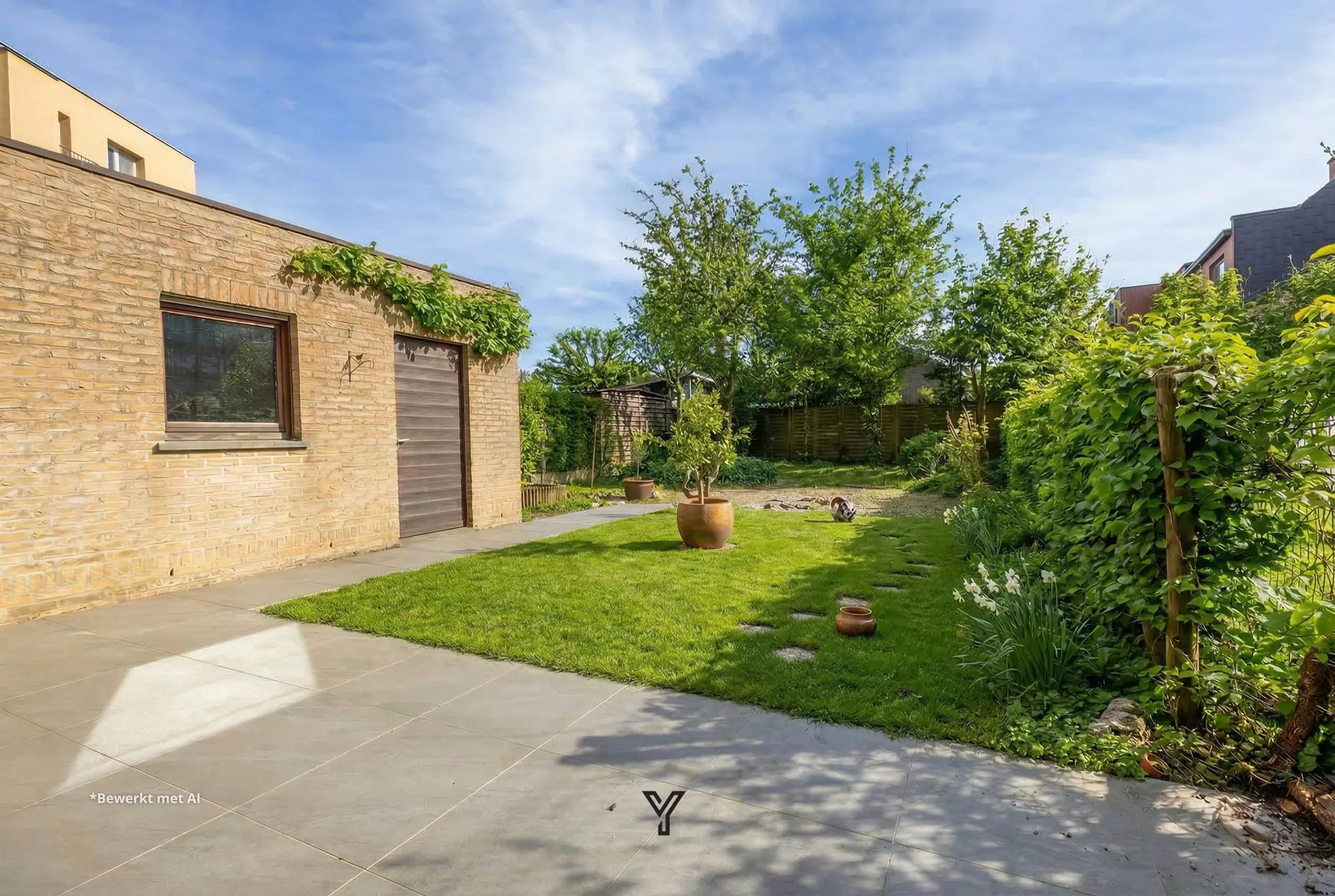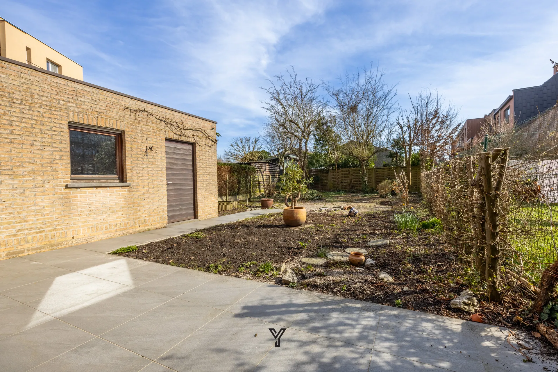 Op het gelijkvloers bevindt zich de vroegere dokterspraktijk, ingericht met een inkomhal met toilet, een wachtruimte, een zeer ruim kabinet en een praktische berging. De praktijkruimte geniet van een mooi zicht op de tuin en geeft toegang tot het aanpalend terras, wat zorgt voor extra licht en een aangename connectie met buiten. Om het gelijkvloers te vervolledigen hebben we nog een ruime garage.
