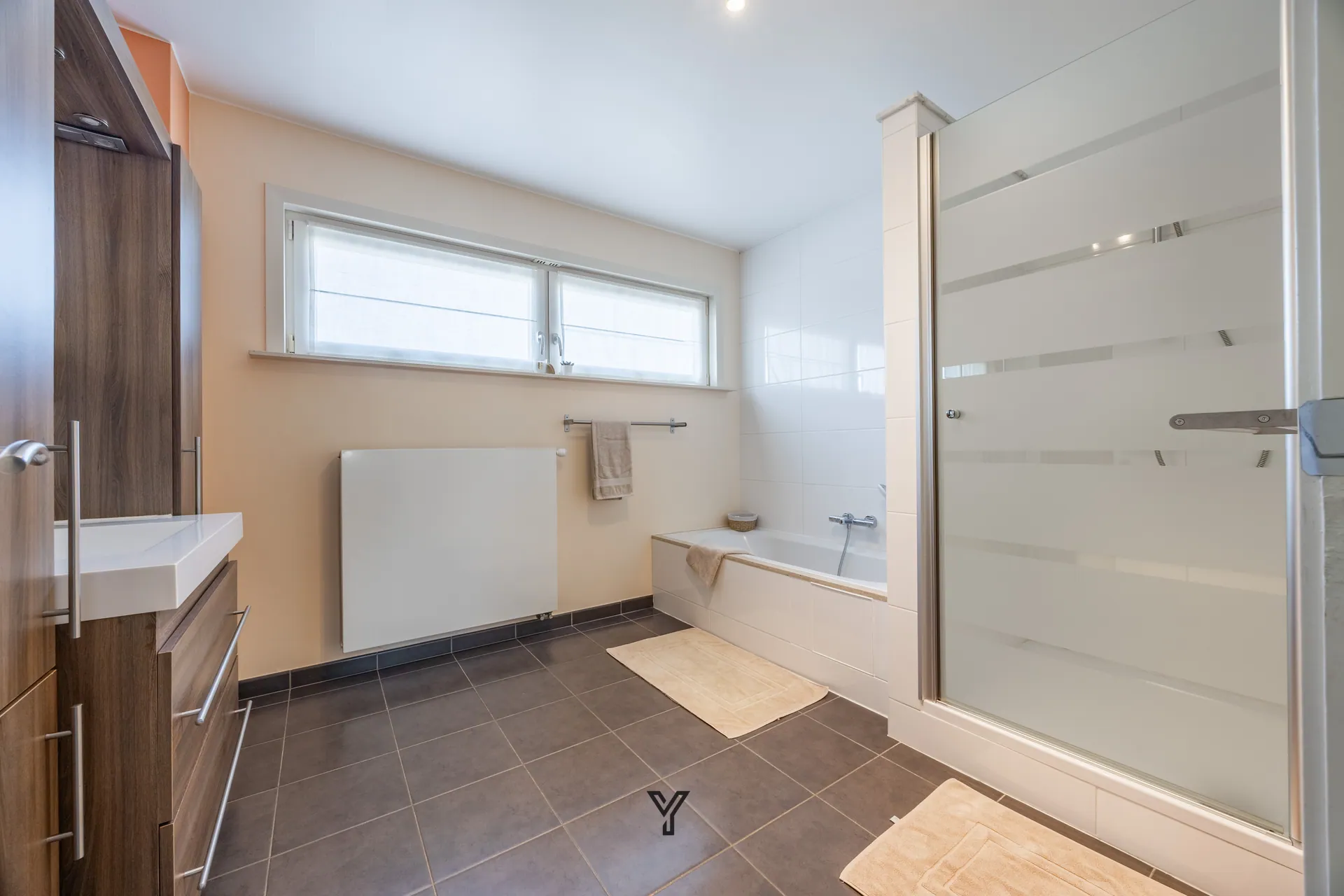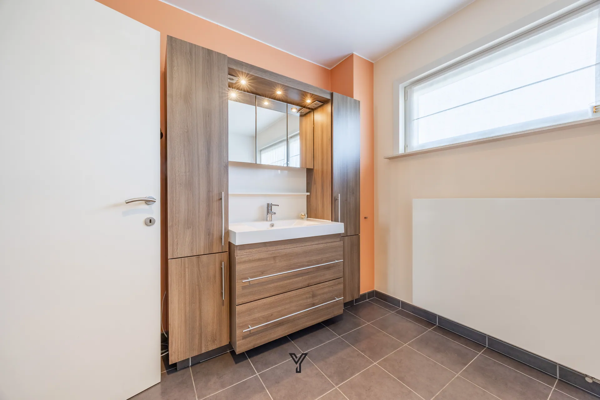 Op de eerste verdieping treffen we drie volwaardige slaapkamers en een badkamer, voorzien van een lavabo in meubel, instapdouche en ligbad. Daarnaast biedt de zolder extra bergruimte.