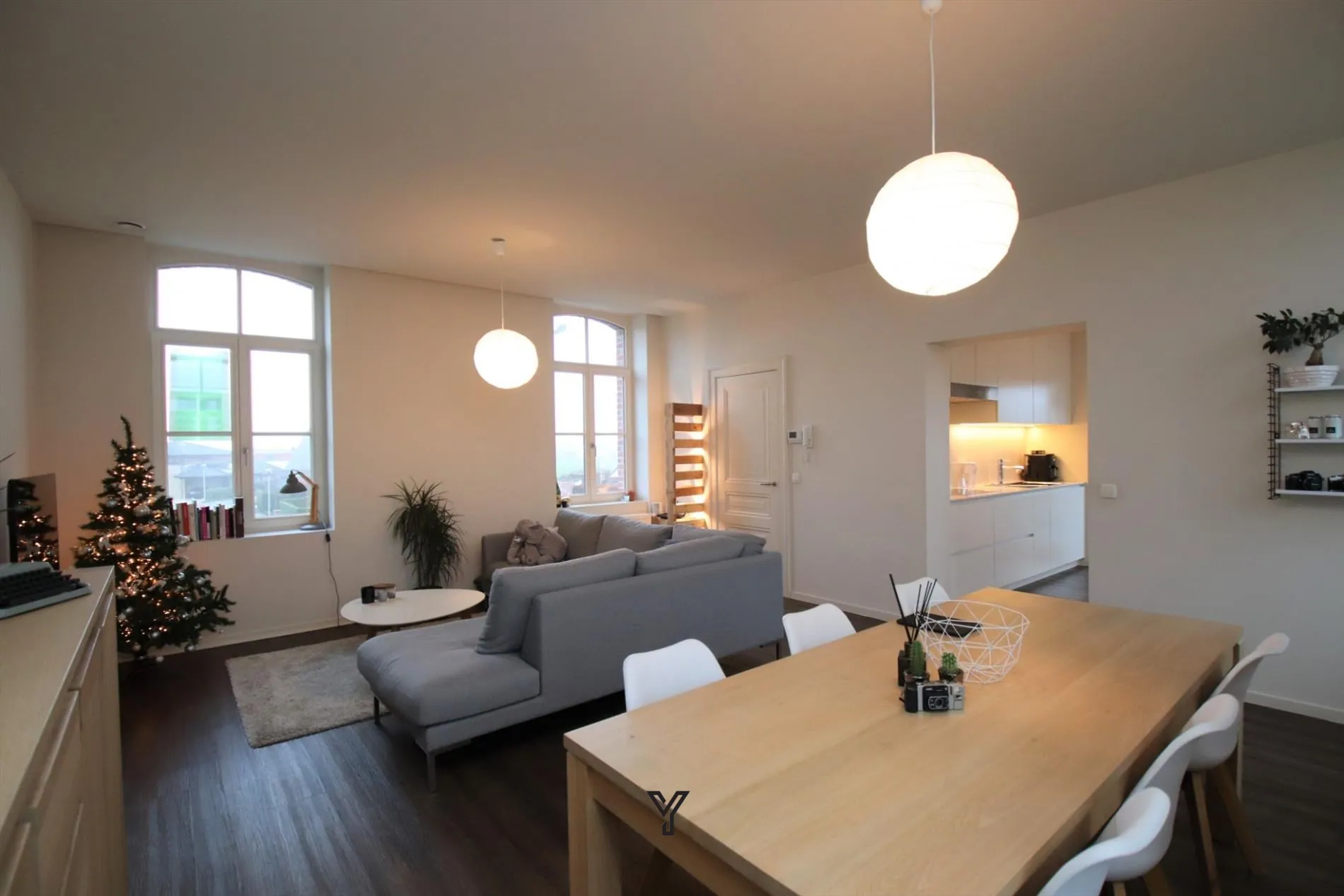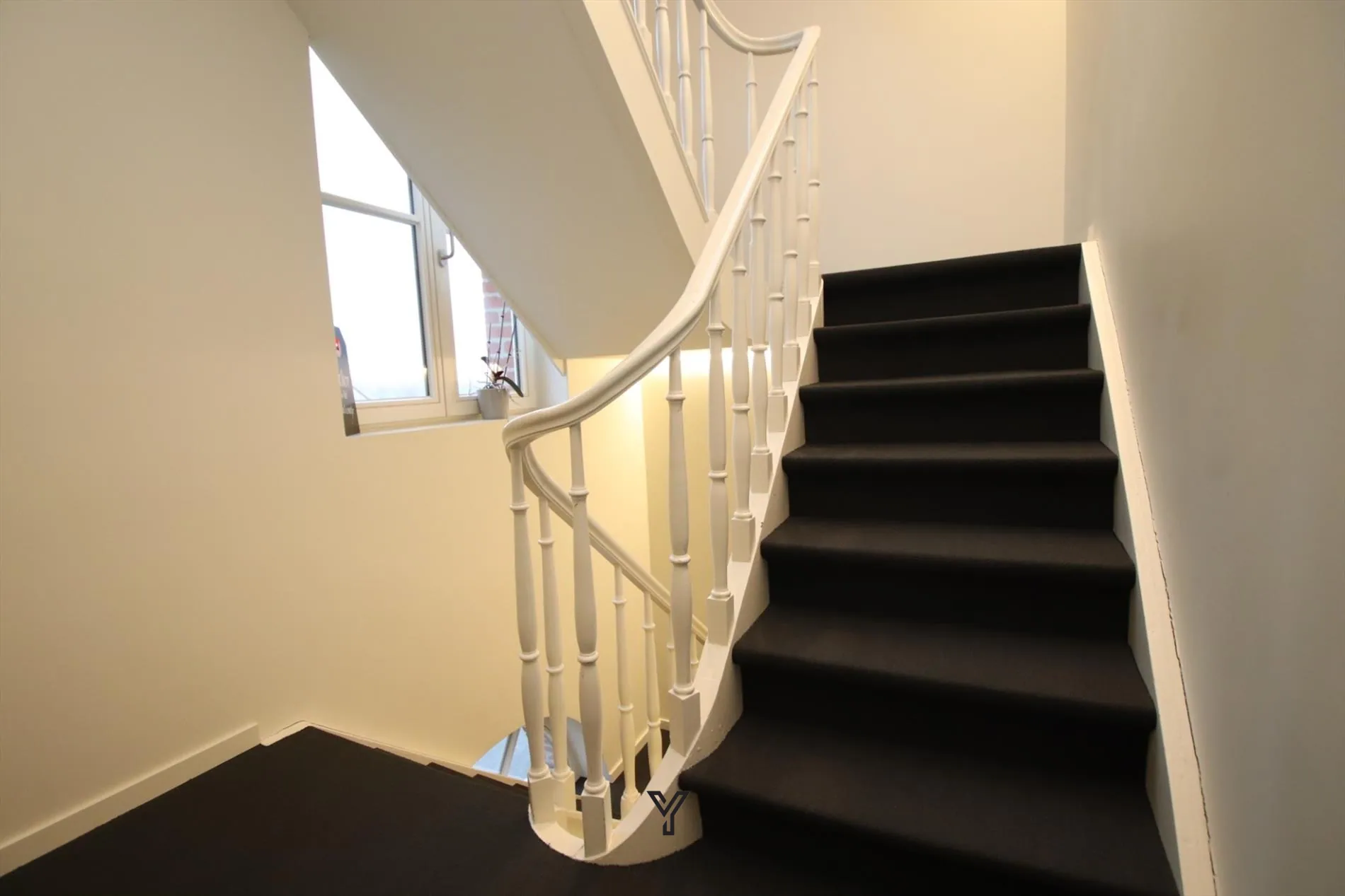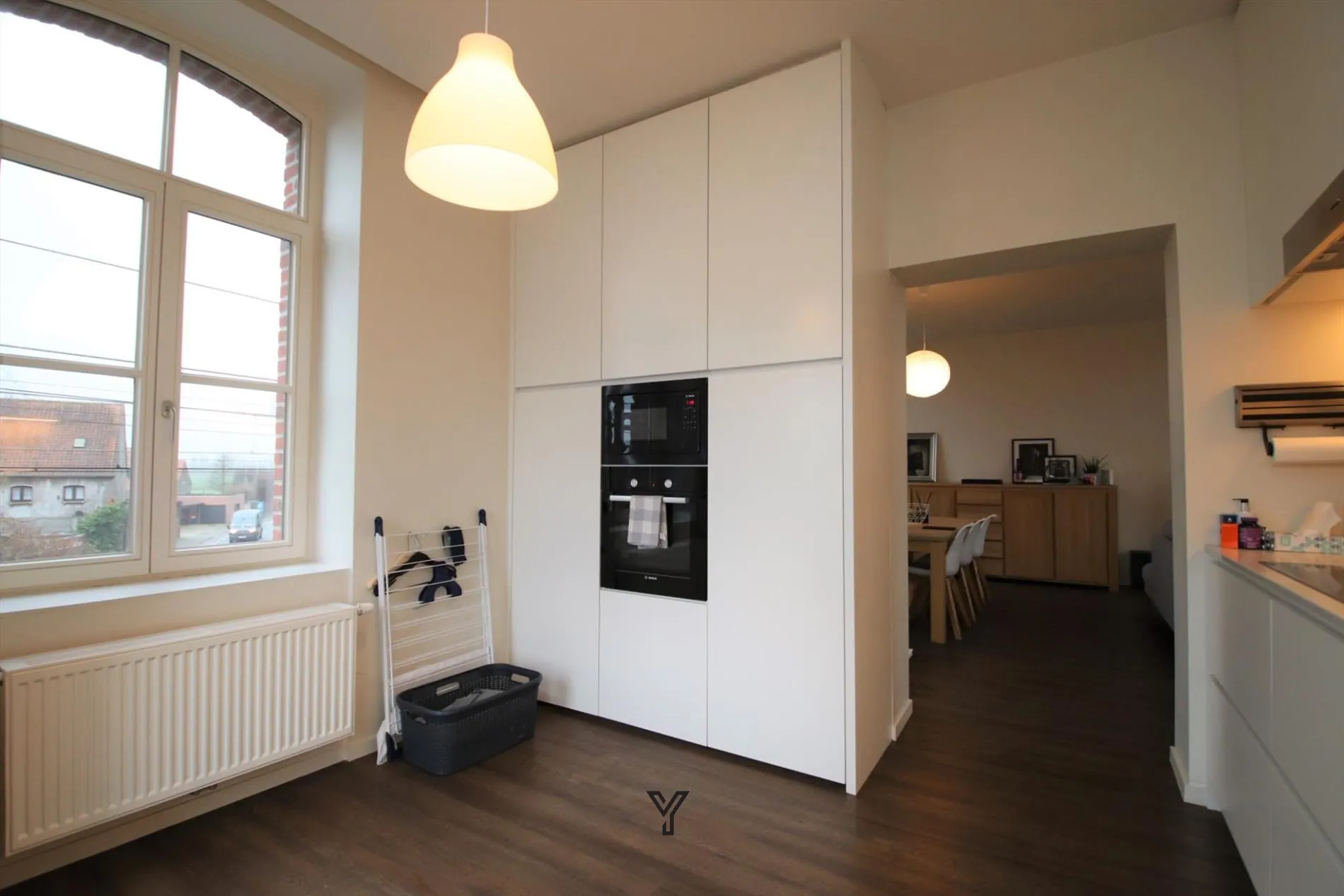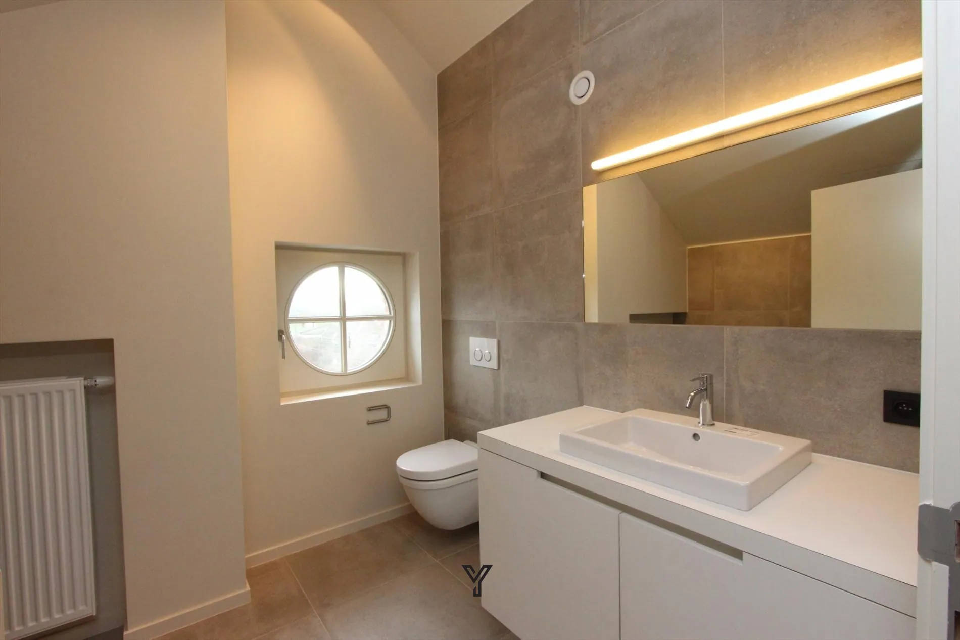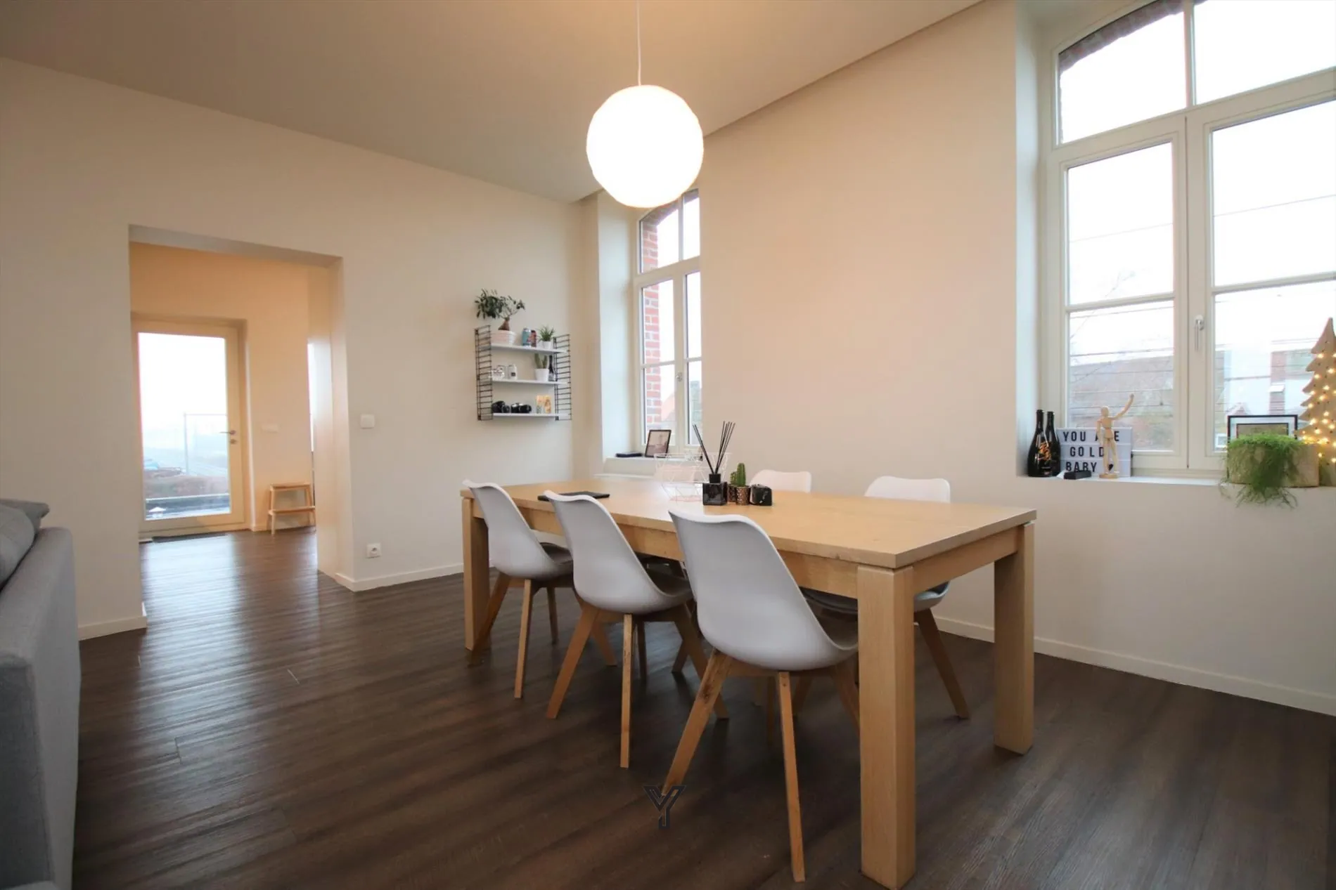 Dit prachtig appartement bestaat op de eerste verdieping uit een ruime U-vormige woonkamer en volledig ingerichte keuken met toegang tot het terras. Via de trappenhal komen we op de tweede verdieping waar we een master bedroom met ingebouwde dressing treffen, een 2de slaapkamer en badkamer met lavabo in meubel, toilet en ligbad. Op het gelijkvloers vinden we de inkomhal met afzonderlijk toilet en berging. Om het geheel af te maken is er een kelder aanwezig en private staanplaats inbegrepen.