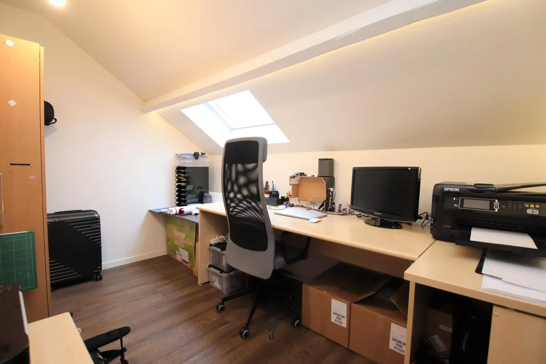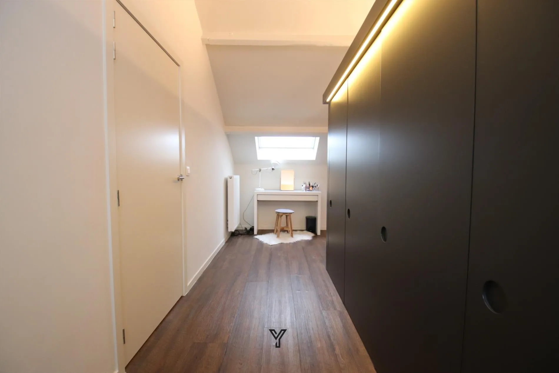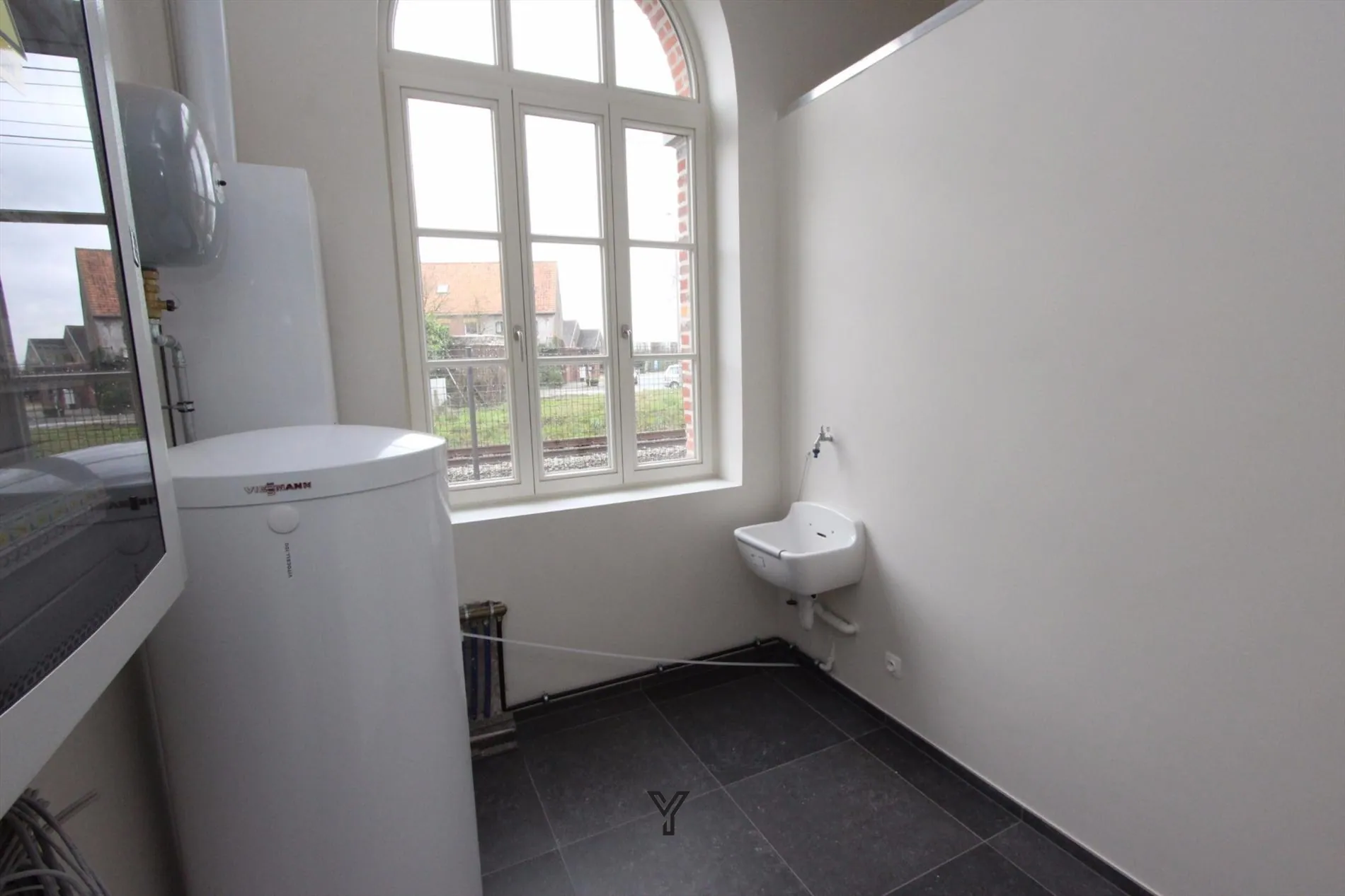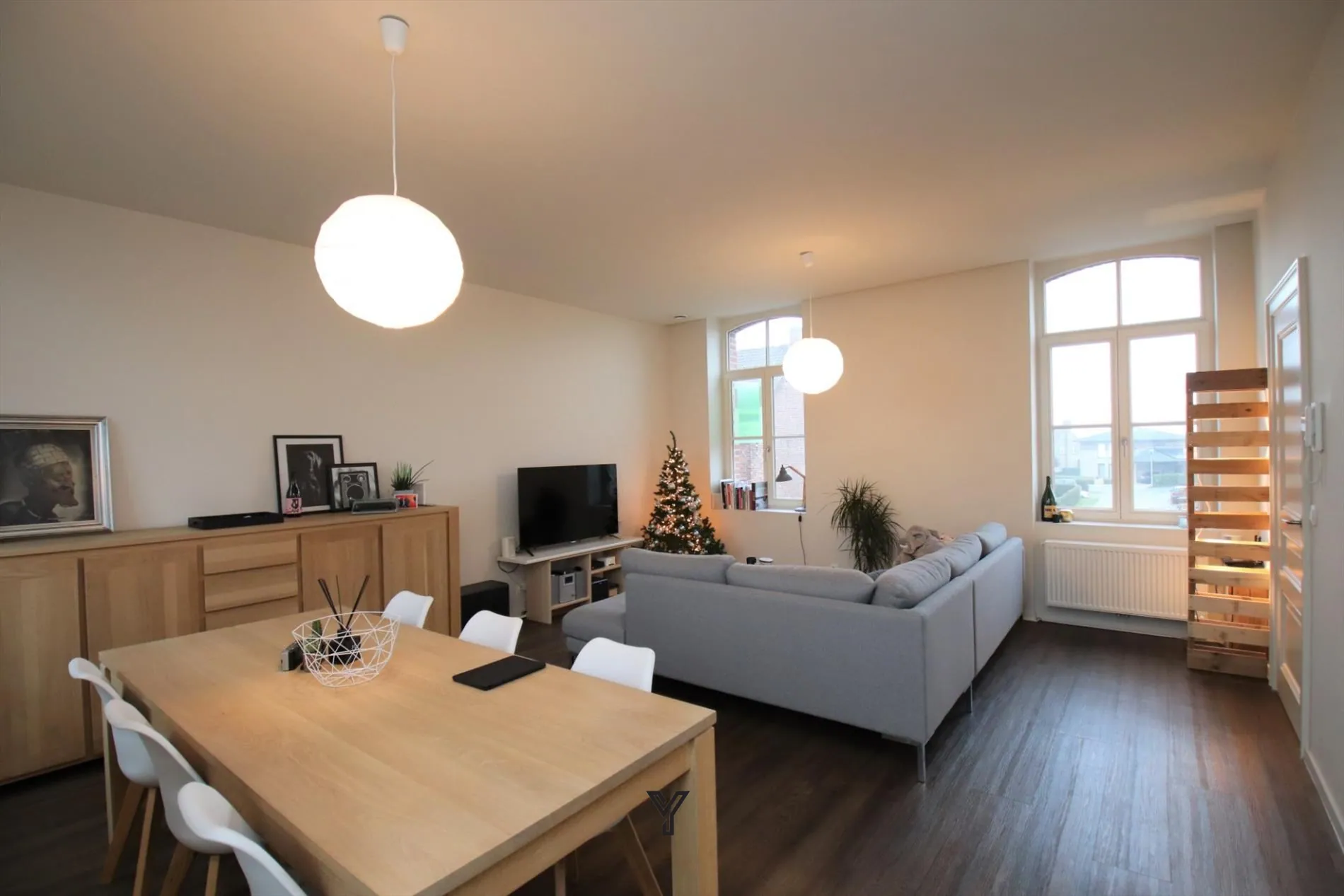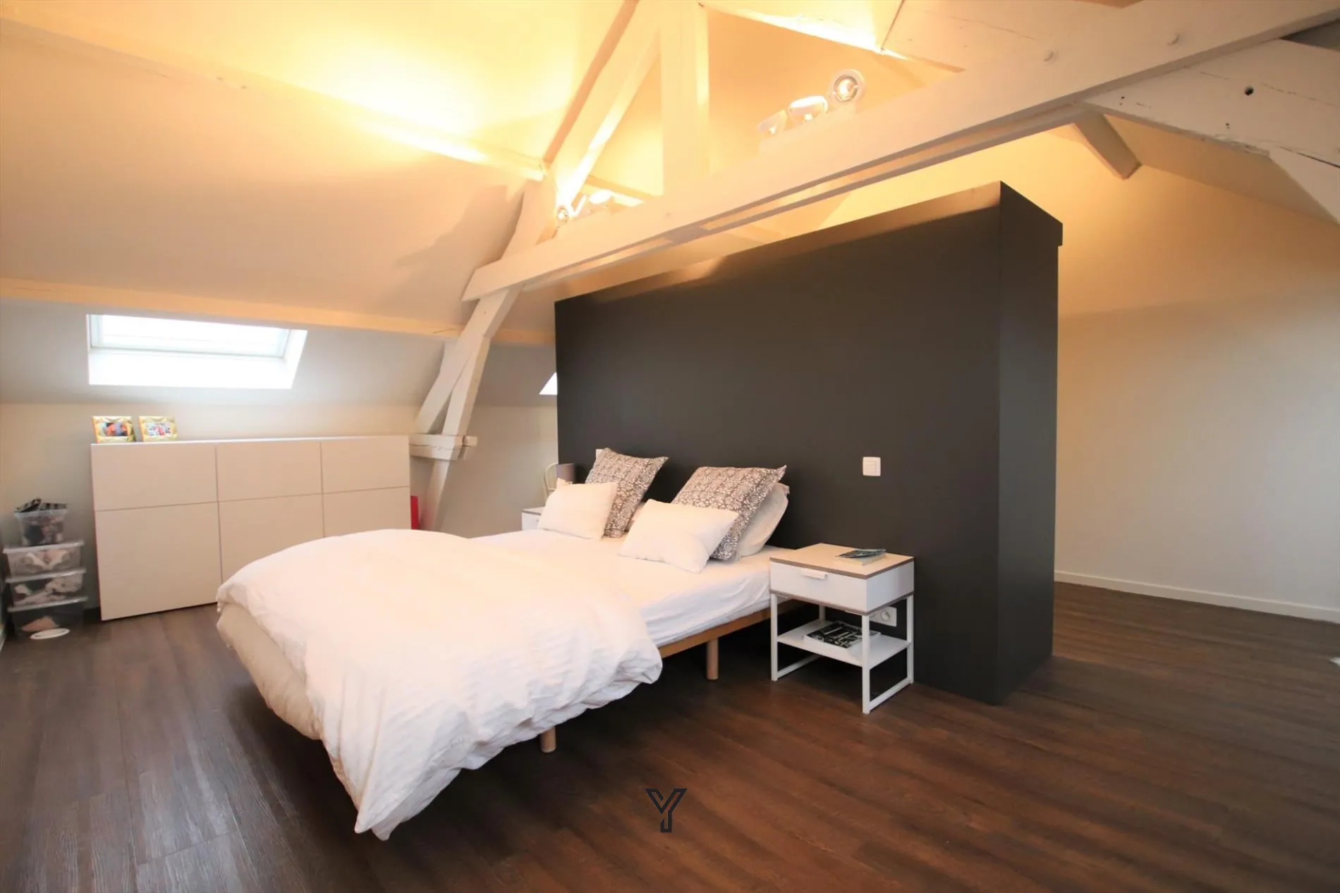 Dit prachtig appartement bestaat op de eerste verdieping uit een ruime U-vormige woonkamer en volledig ingerichte keuken met toegang tot het terras. Via de trappenhal komen we op de tweede verdieping waar we een master bedroom met ingebouwde dressing treffen, een 2de slaapkamer en badkamer met lavabo in meubel, toilet en ligbad. Op het gelijkvloers vinden we de inkomhal met afzonderlijk toilet en berging. Om het geheel af te maken is er een kelder aanwezig en private staanplaats inbegrepen.