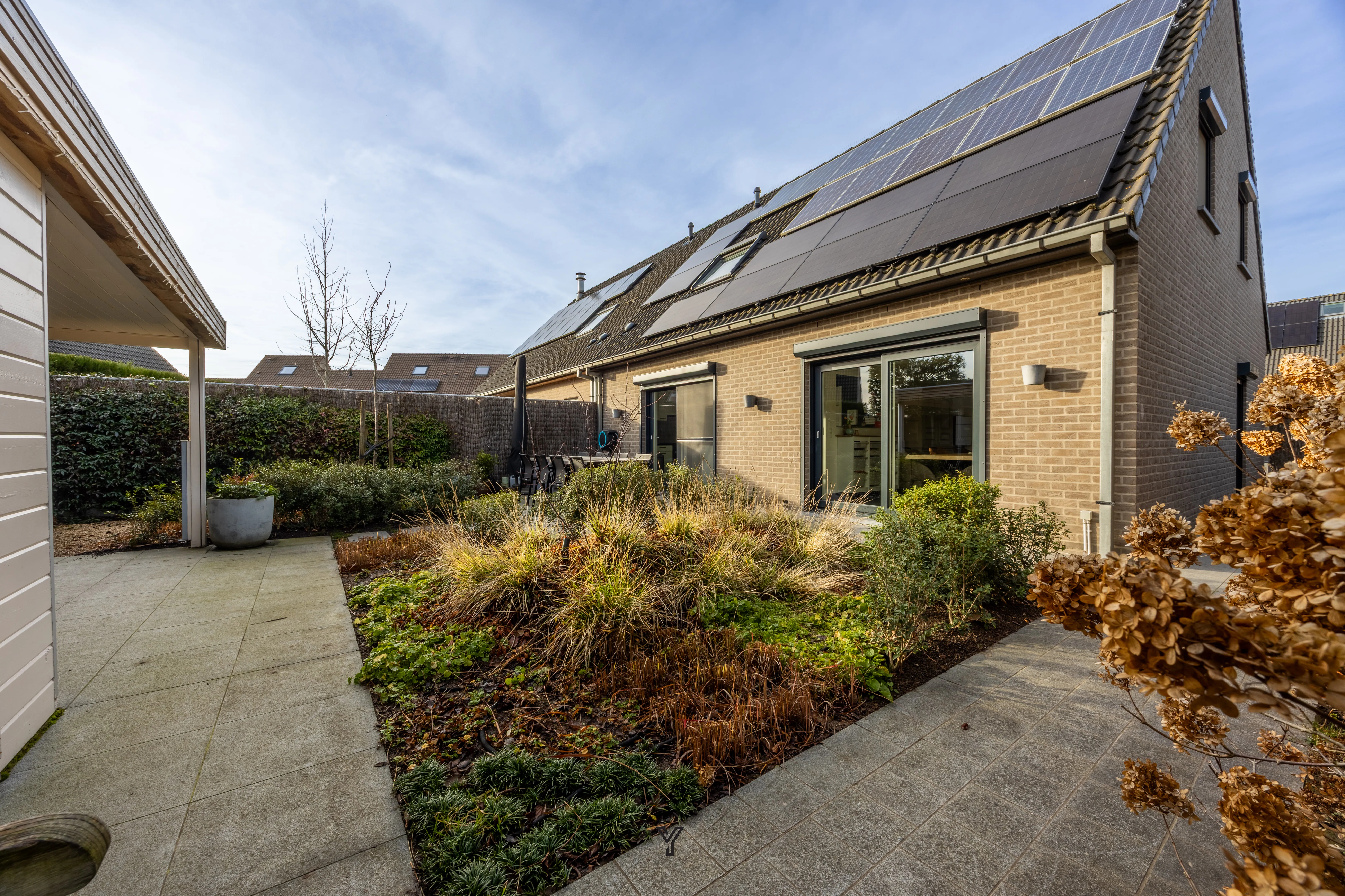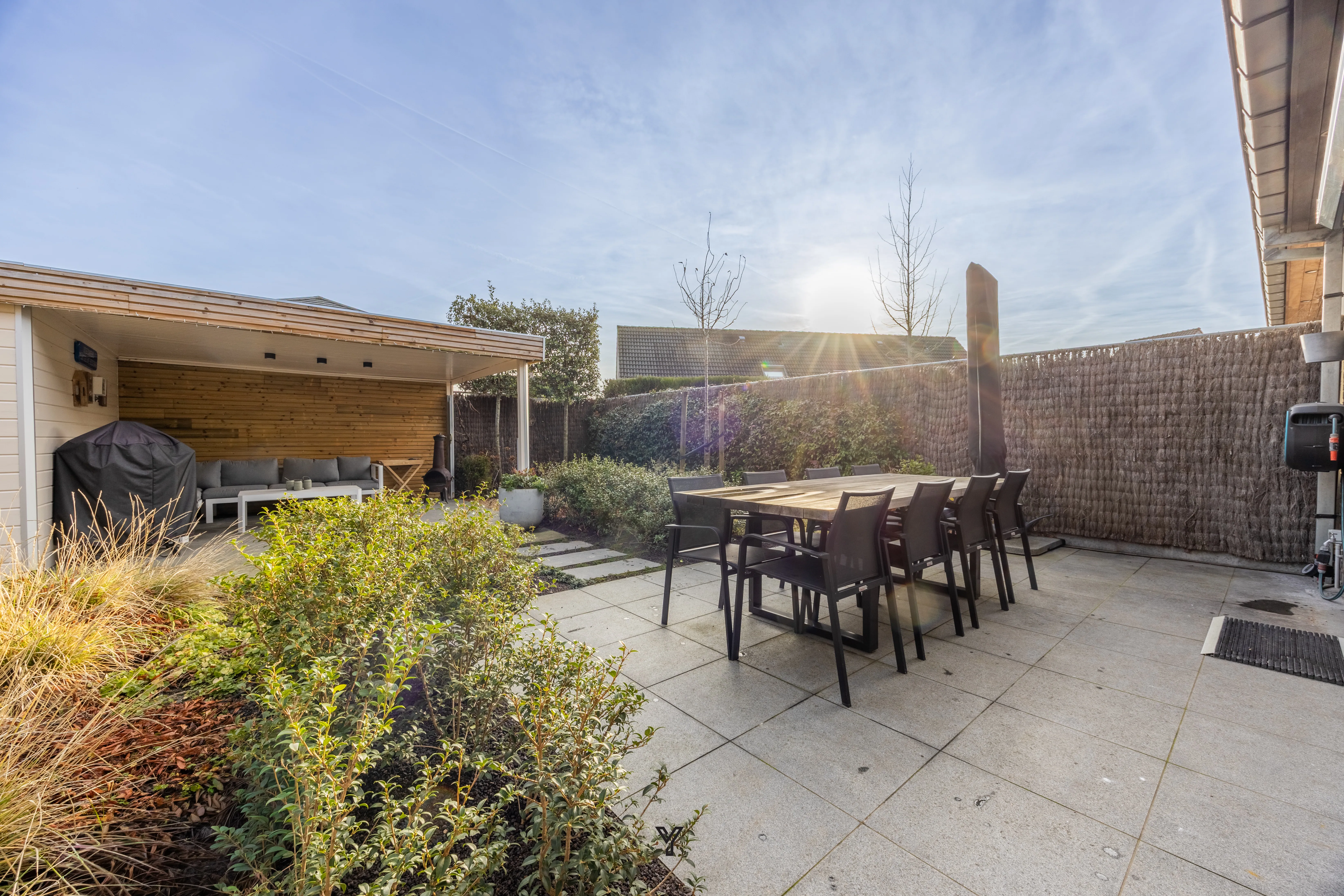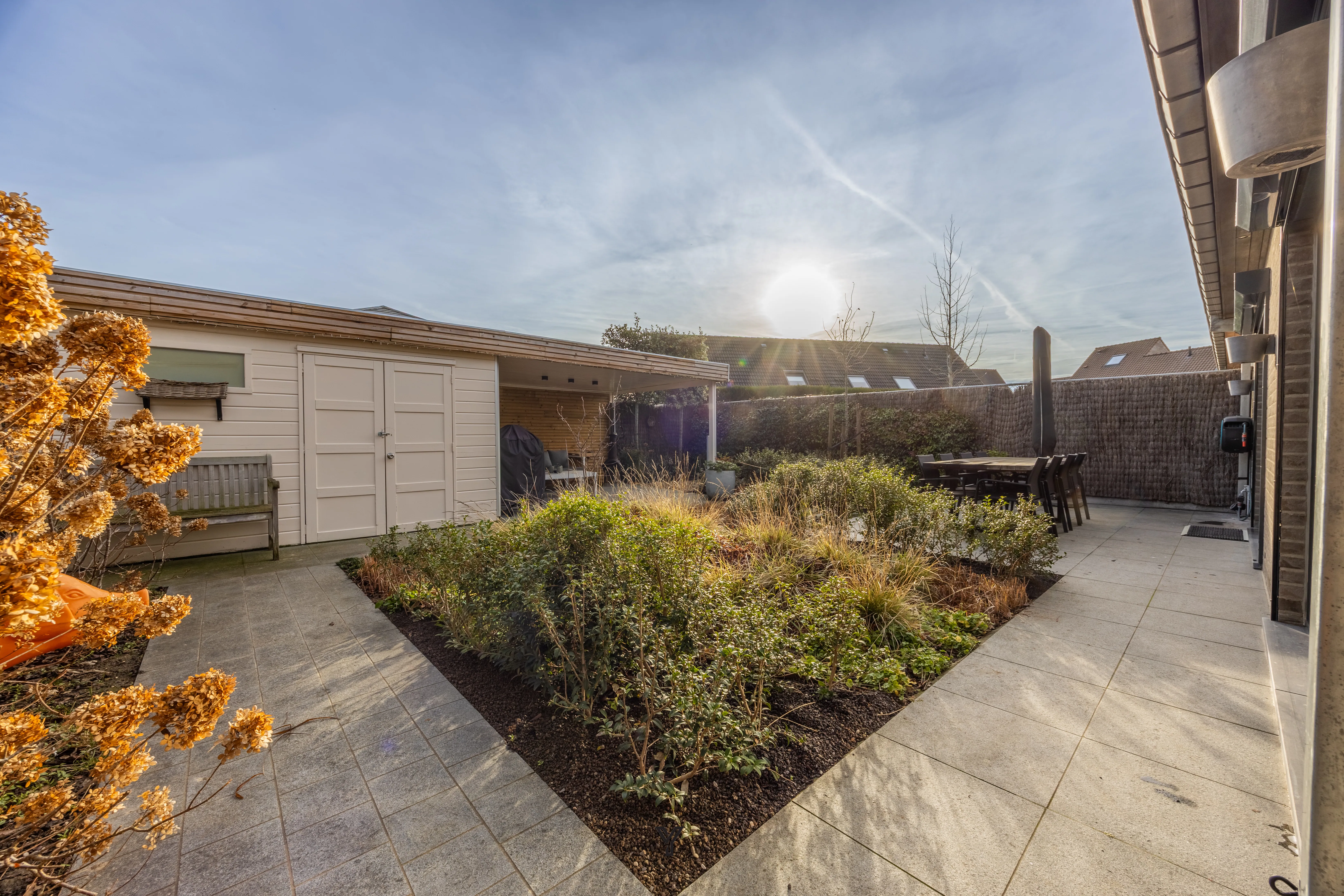 De tuin werd slim ingericht met een tuinberging en een aangrenzend overdekt terras, perfect om het hele jaar door van het buitenleven te genieten. De voortuin werd recent aangelegd en biedt plaats aan twee private autostaanplaatsen.